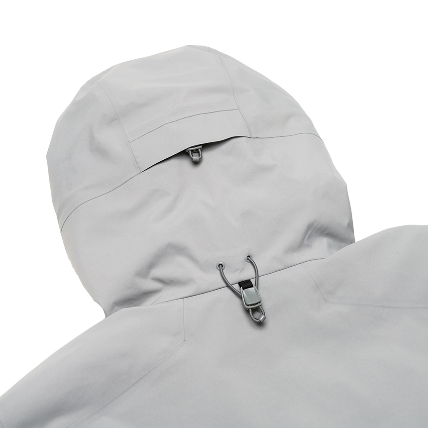 5. 내장된 후드는 헬멧을 착용하고 쓸 수 있을만큼 크게 조정이 가능하여, 험한 자연에서 안전하게 머리를 보호할 수 있습니다.