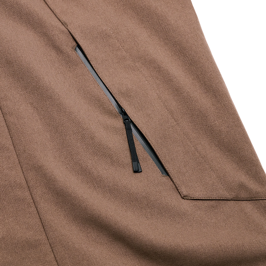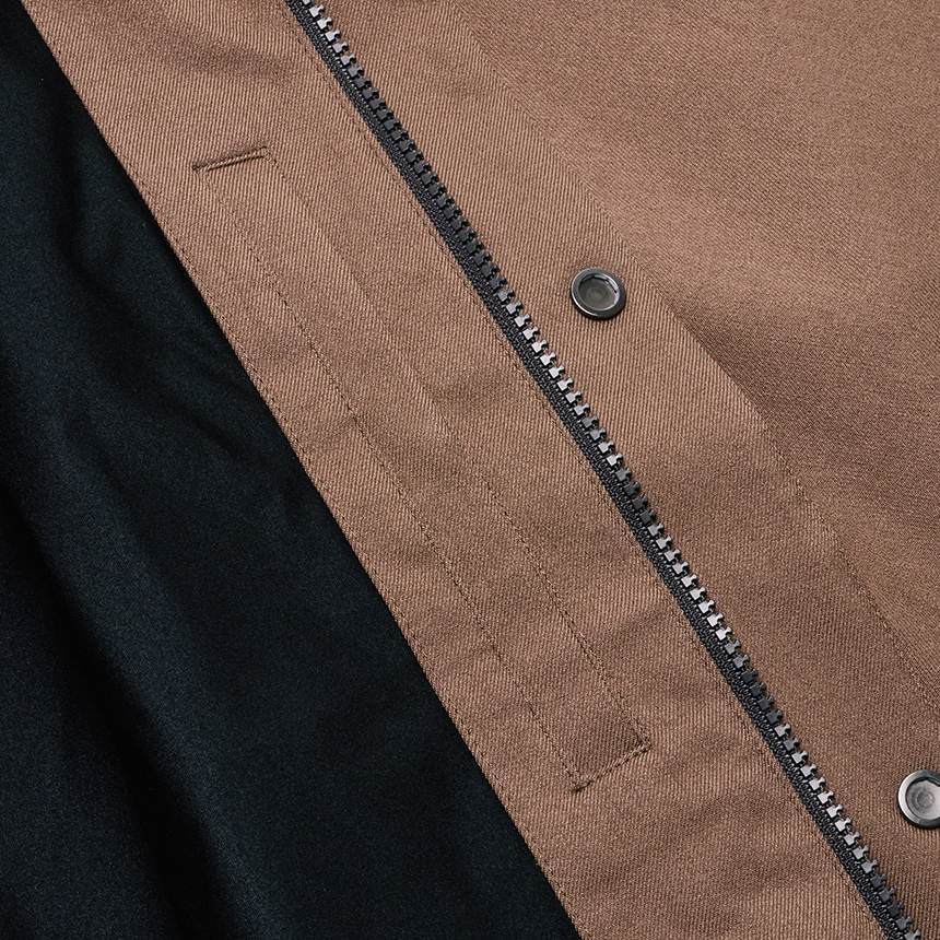 겉감으로는 울(wool) 과 유사한 구조와 터치감의 소재가 적용되 차별화된 외관의 바람막이 입니다.