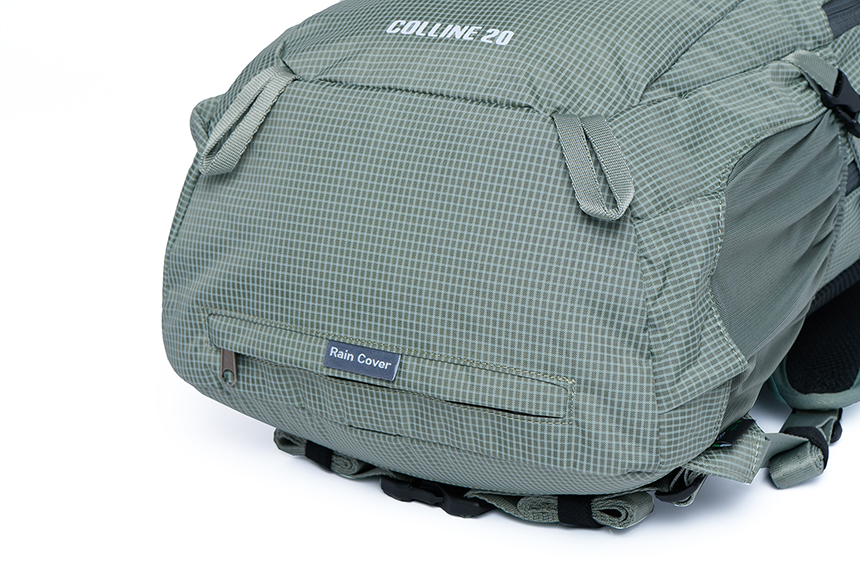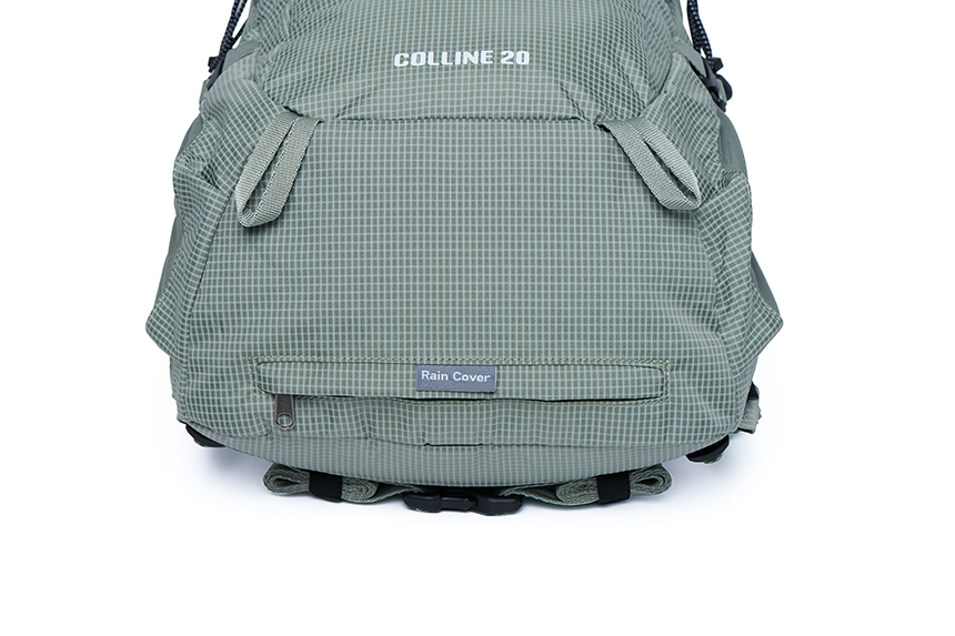 배낭 하단 포켓에 레인커버는 우천 시 편하게 사용하고 수납할 수 있습니다.