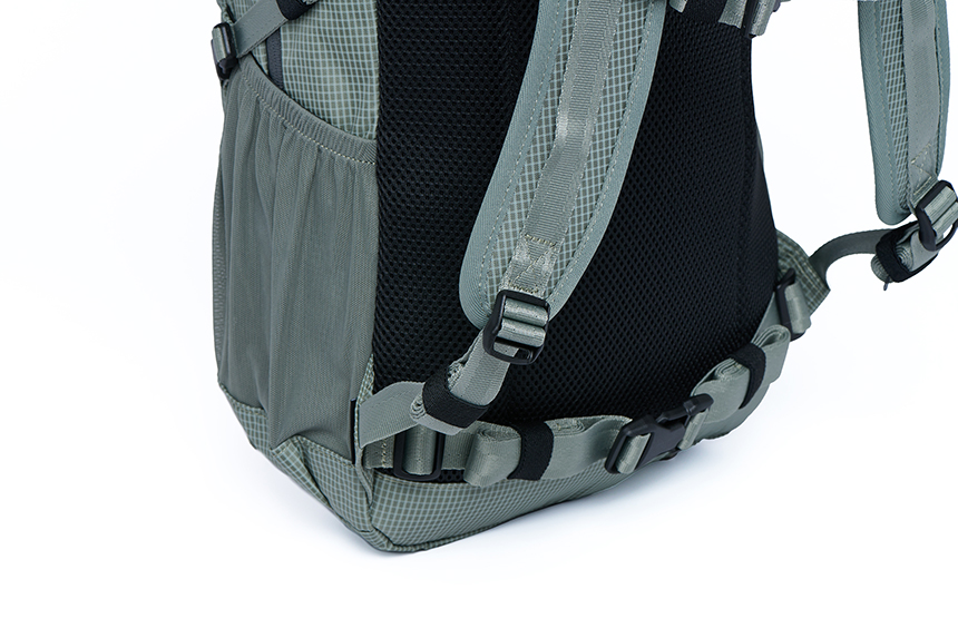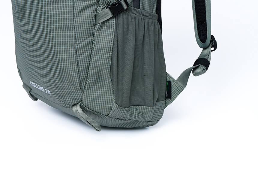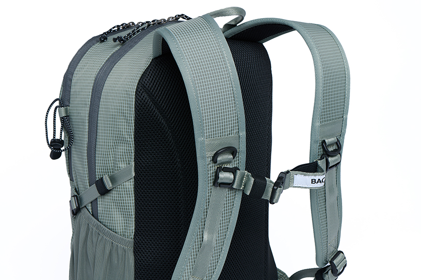 가벼운 산행뿐만 아니라 일상생활에까지 다용도로 활용이 가능한 20L 배낭으로 경량 립스탑(regen robic 리사이클) 원단을 사용하였습니다.
