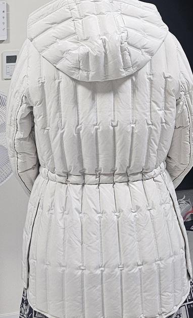 [세로형 튜브 패턴 소재를 적용한 여성 루클라 후디 튜브 다운자켓]