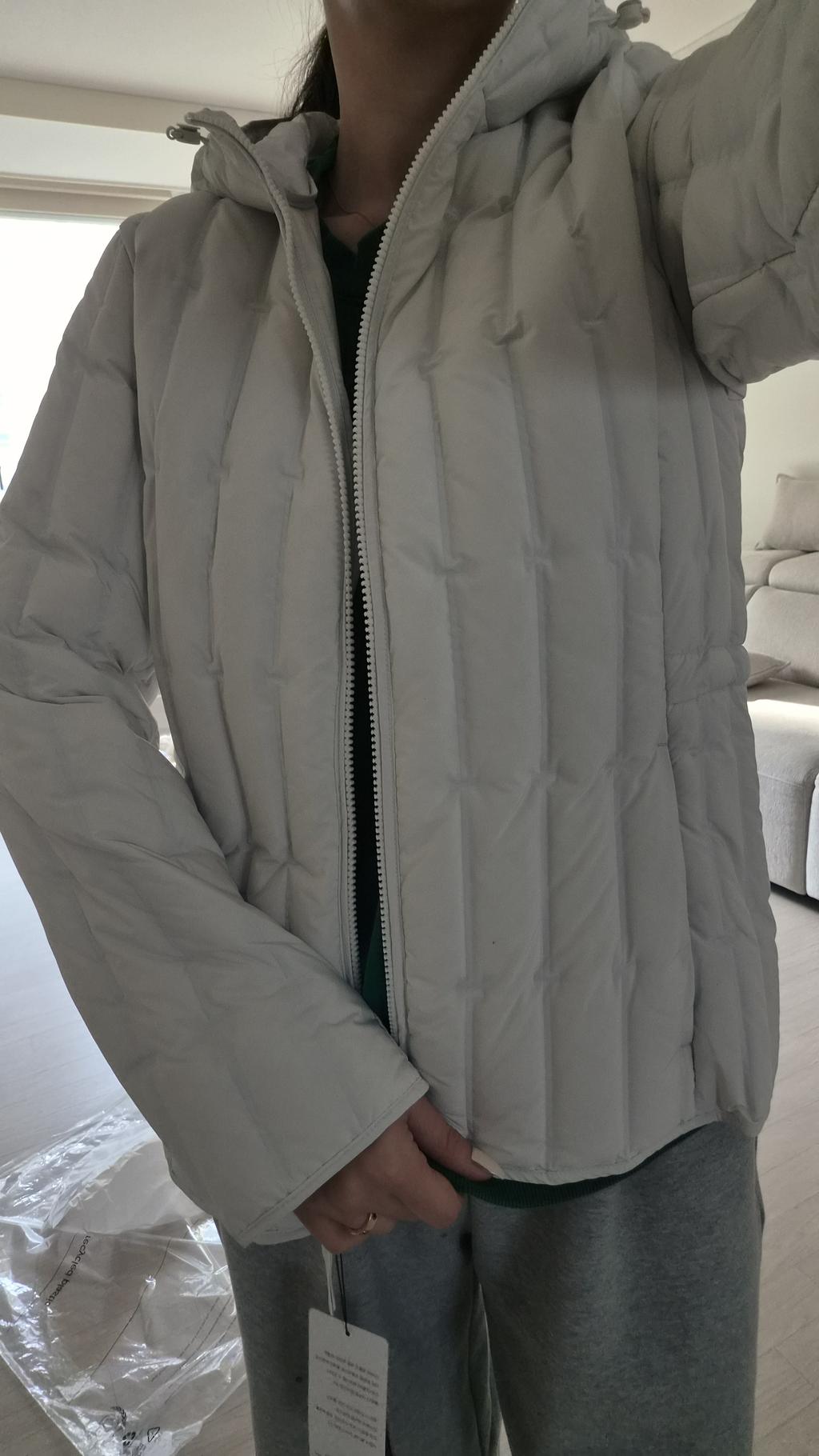 퀼팅 봉제선이 없는 튜브 패턴을 사용하여 봉제선에서 다운이 새어나오는 삼출 현상을 방지하여 보온성을 강화한 후드일체형 경량 다운입니다.