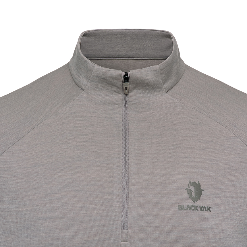 메리노 울 35% 함유 소재를 사용한 기능성 집업 긴팔 티셔츠입니다.