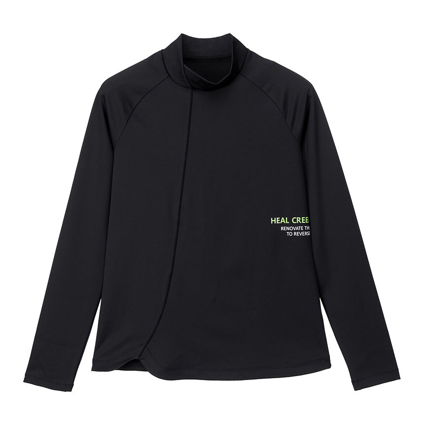 - 베이직한 터틀넥에 사선 에리 변형 디자인을 한 하이넥 티셔츠입니다.