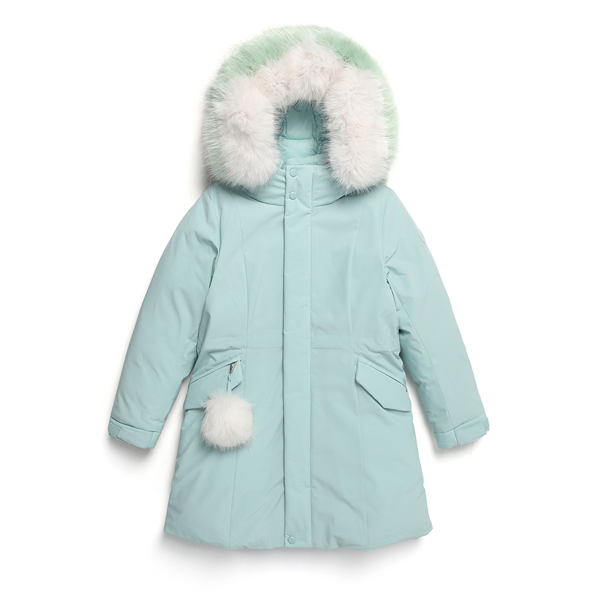 - 풍성한 에코퍼가 매력적인 여아 전용 롱 다운자켓입니다.