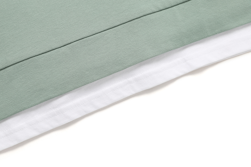 - 상의 : 밑단에 배색 레이어드 디테일을 적용하여 디자인 차별화를 주었습니다.