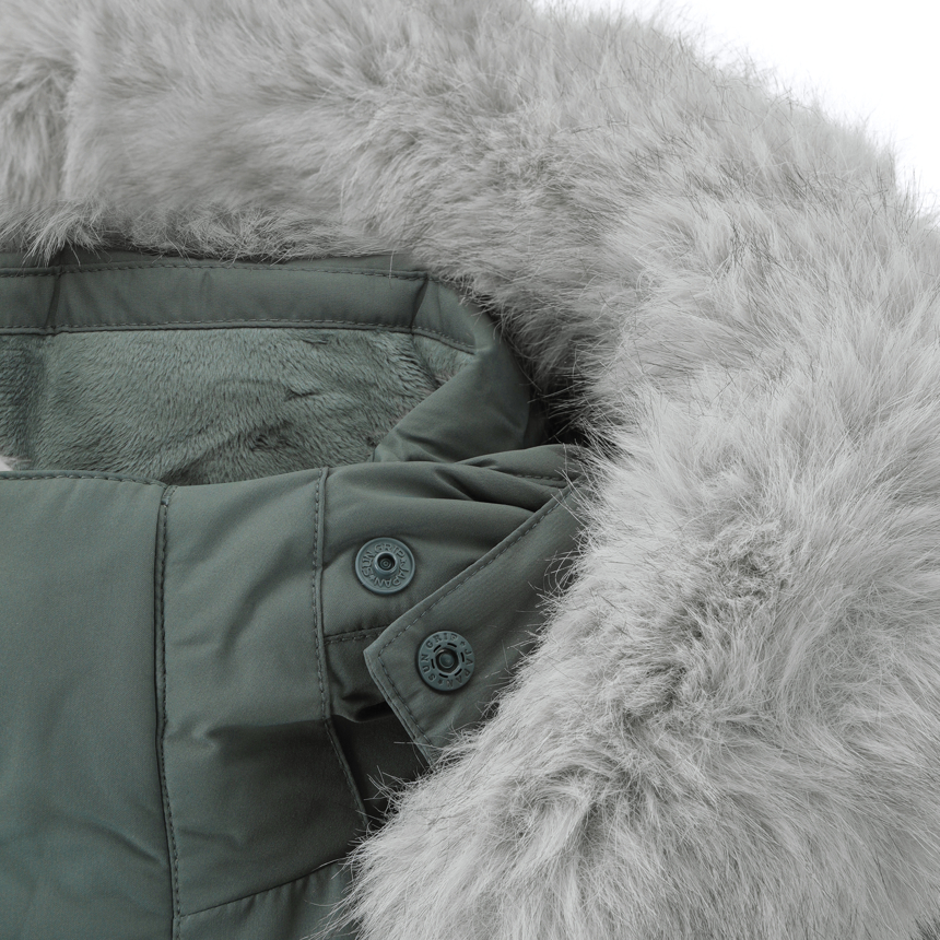 - 풍성한 퍼가 매력적인 야상 다운자켓입니다.