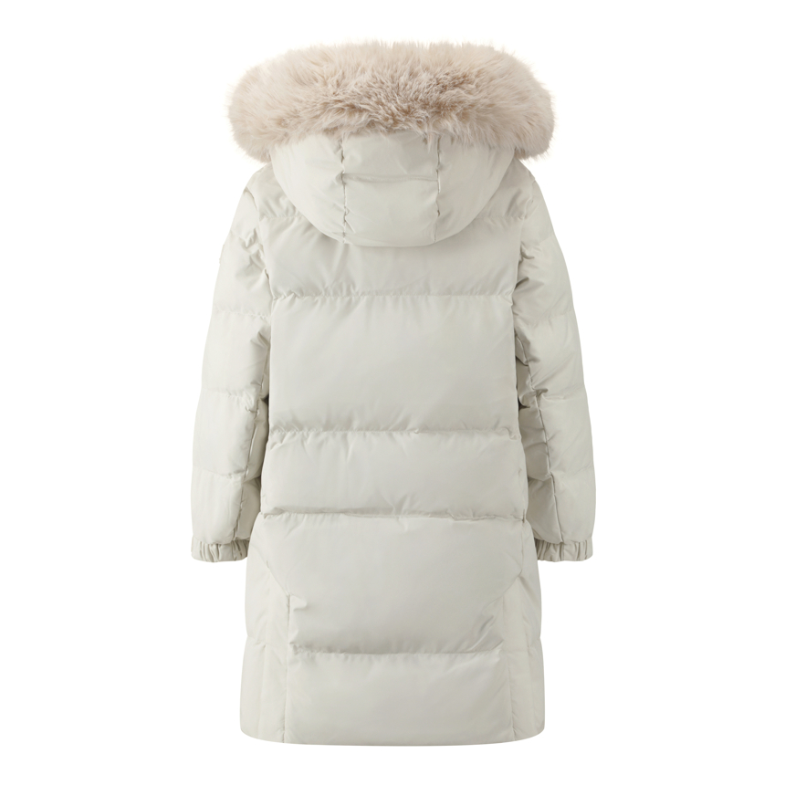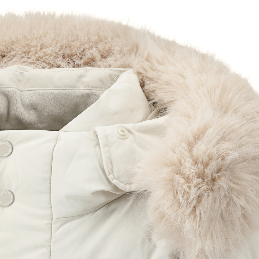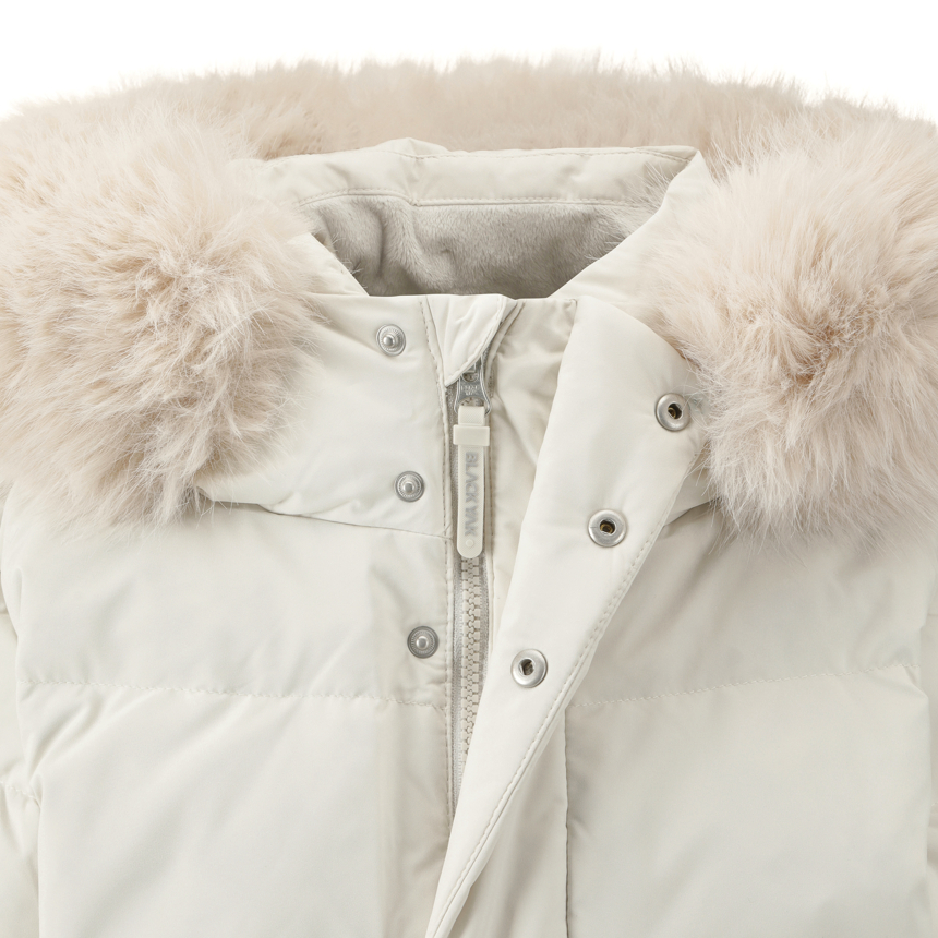 - 풍성한 퍼와 깔끔한 디테일이 돋보이는 롱 다운 자켓입니다.