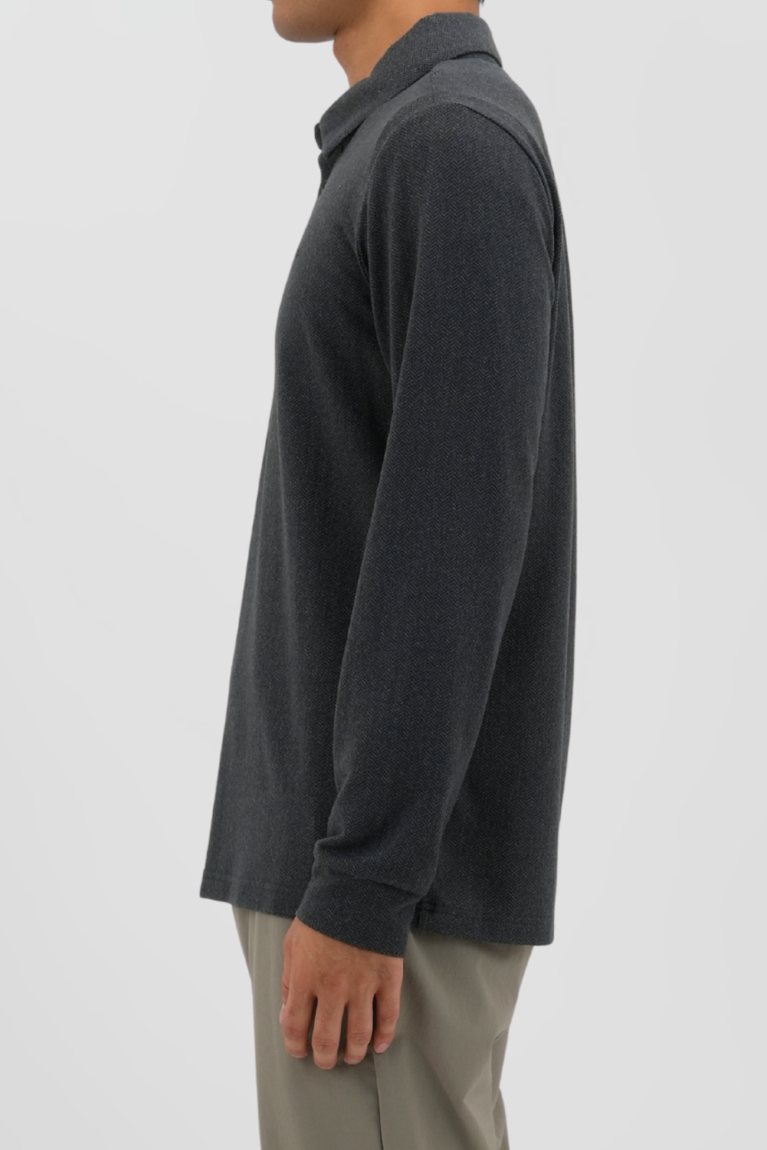 - 잔잔한 헤링본패턴이 들어있는 카라 티셔츠