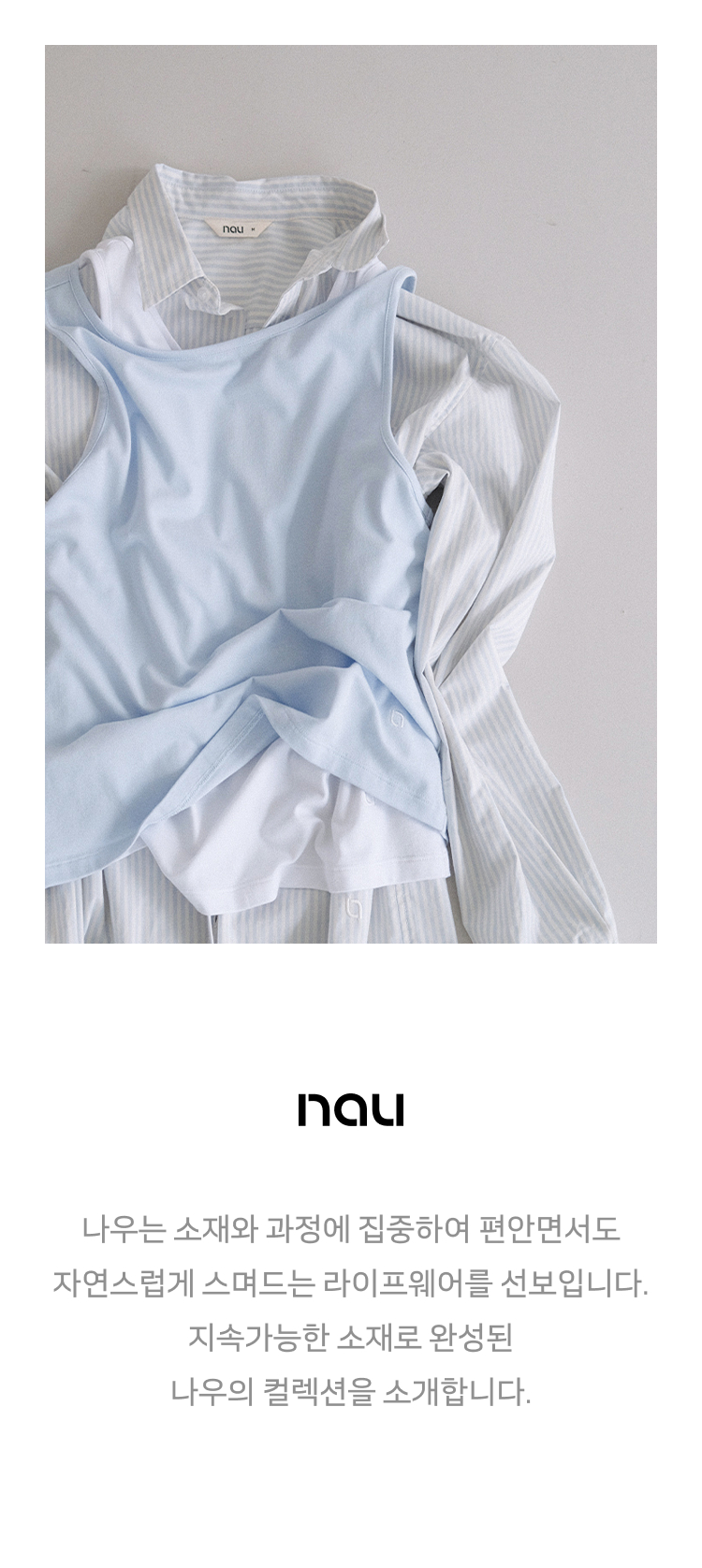 W 모달 데님 슬리브리스 탑