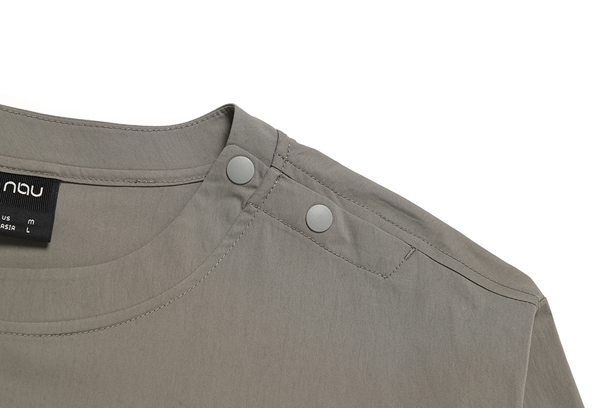 네크라인에 텐션과 복원력을 갖춘 립조직 원단 사용하여 목 늘어남을 최소화하였습니다.