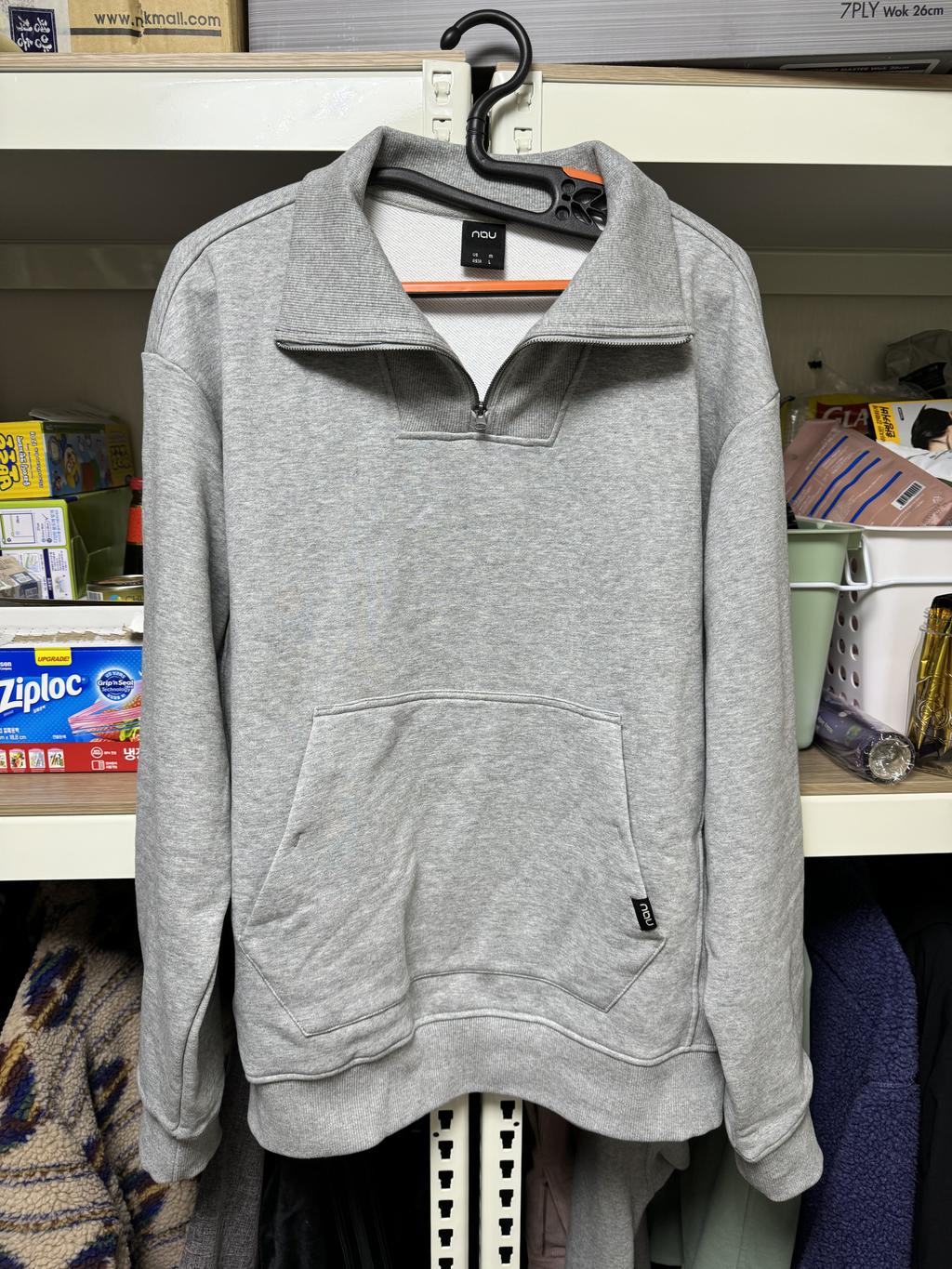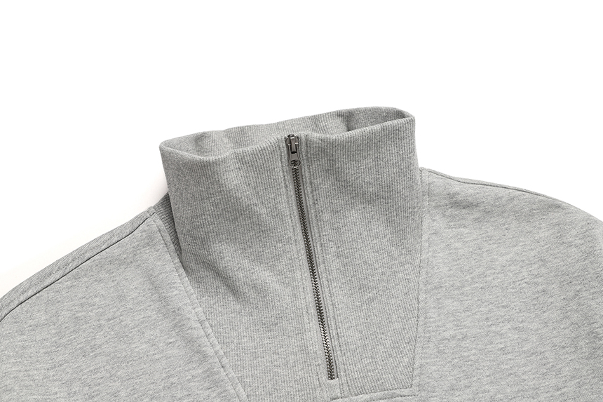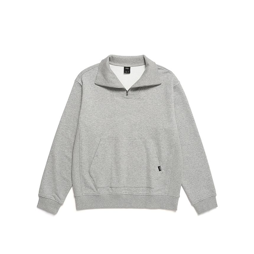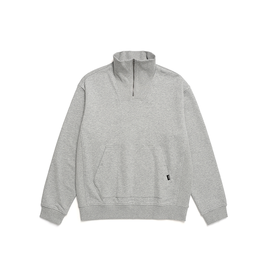 여유 있는 세미 루즈 핏의 남녀 공용 하프 집업 스웻 셔츠입니다.
