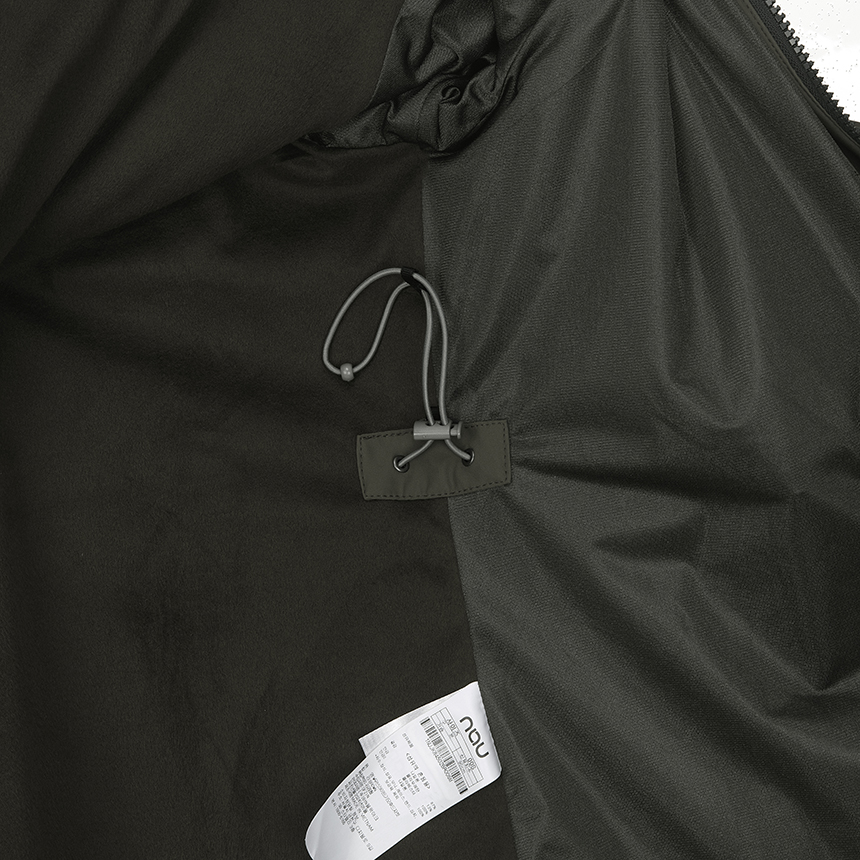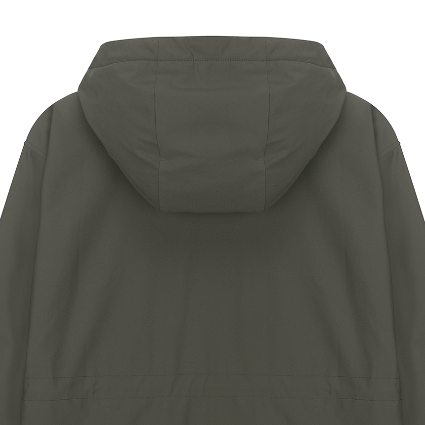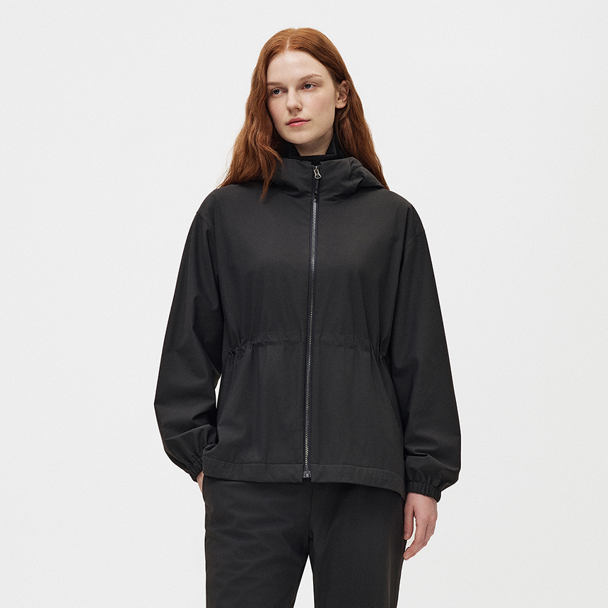 후드와 허리안 스트링 조임으로 자유로운 실루엣 변형이 가능합니다.