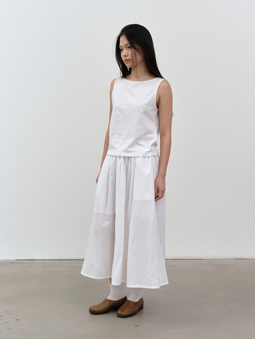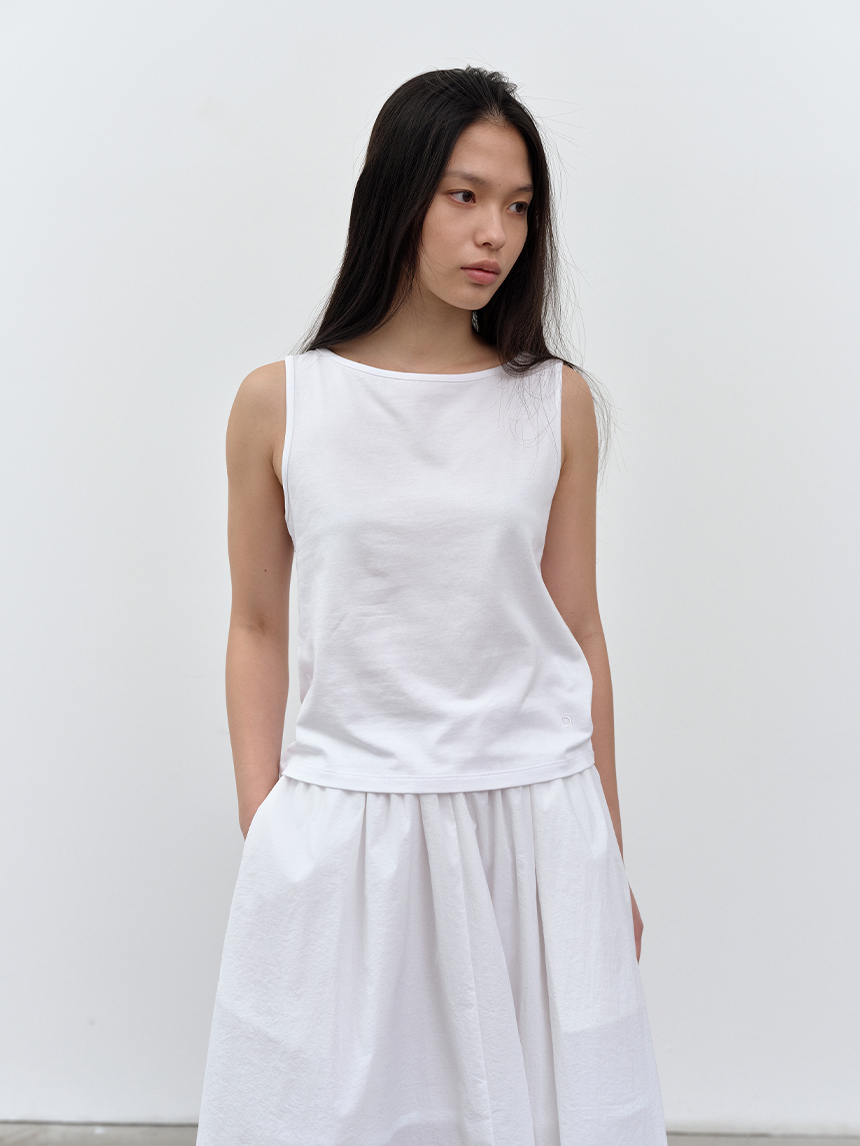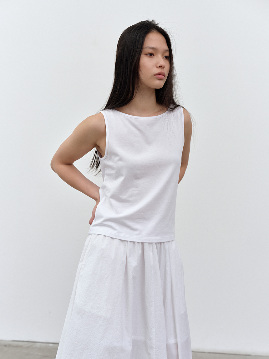 W 모달 보트넥 슬리브리스 탑 WHITE
