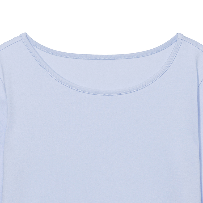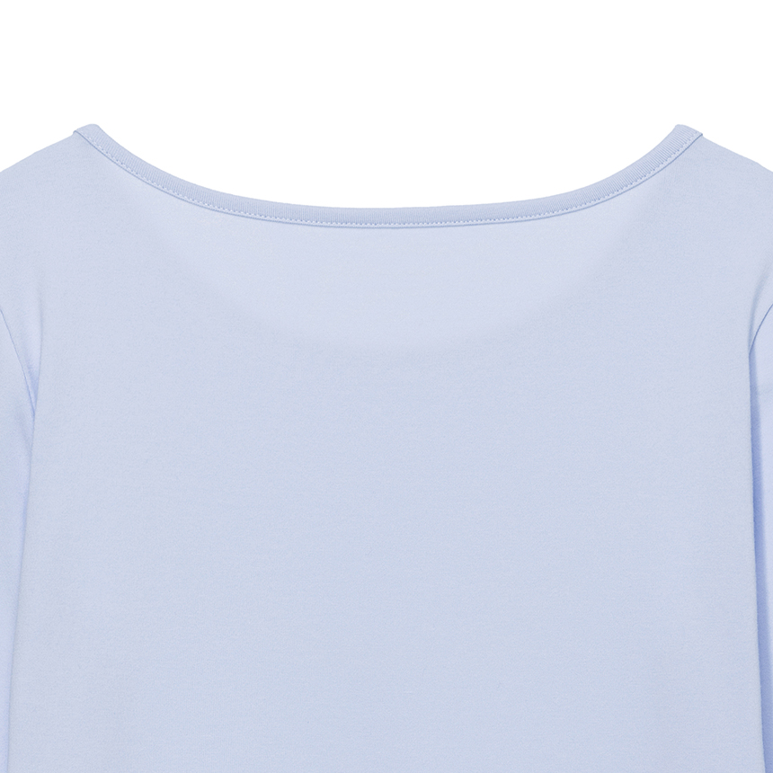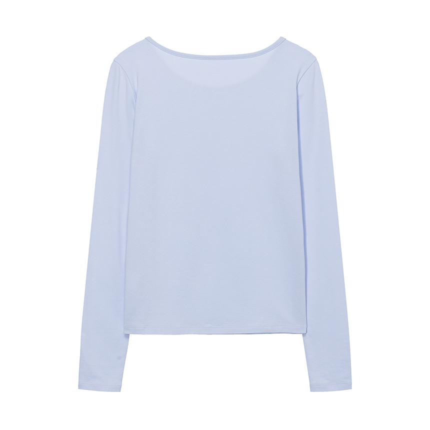 넥 라인을 얇고 섬세하게 마감해 목선을 부드럽게 살려주는 디테일이 매력적인 아이템입니다.