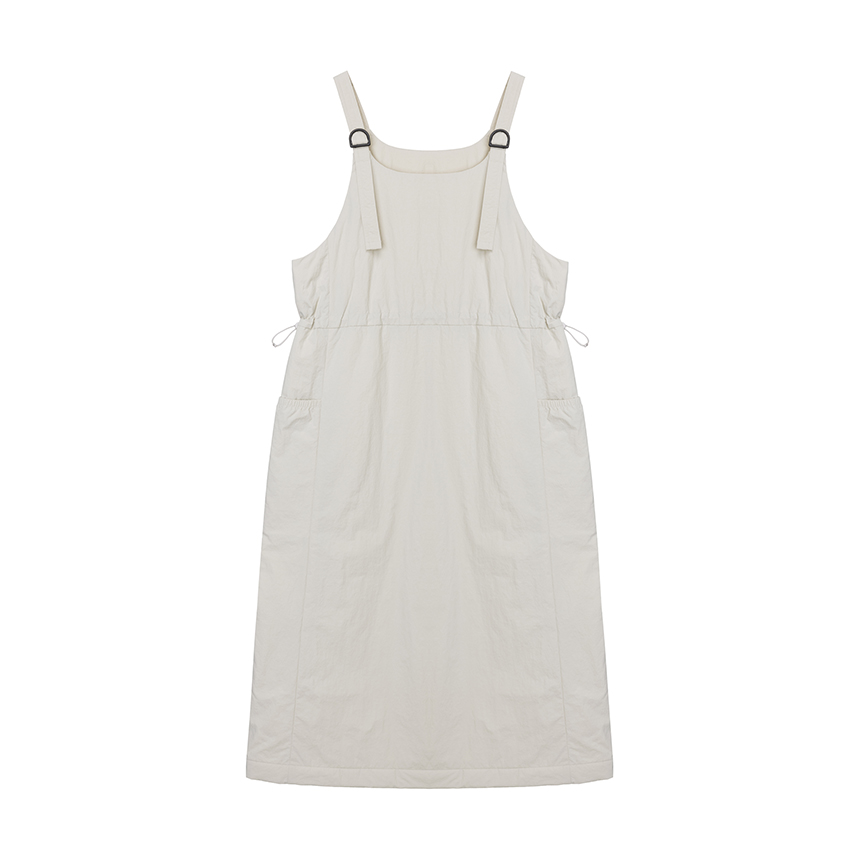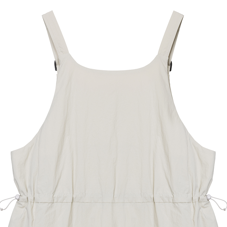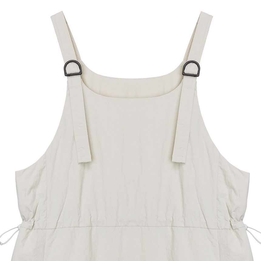 허리 스트링과 어깨끈으로 원하는 핏을 연출하고, 앞뒤 구분 없이 자유롭게 착용할 수 있습니다.