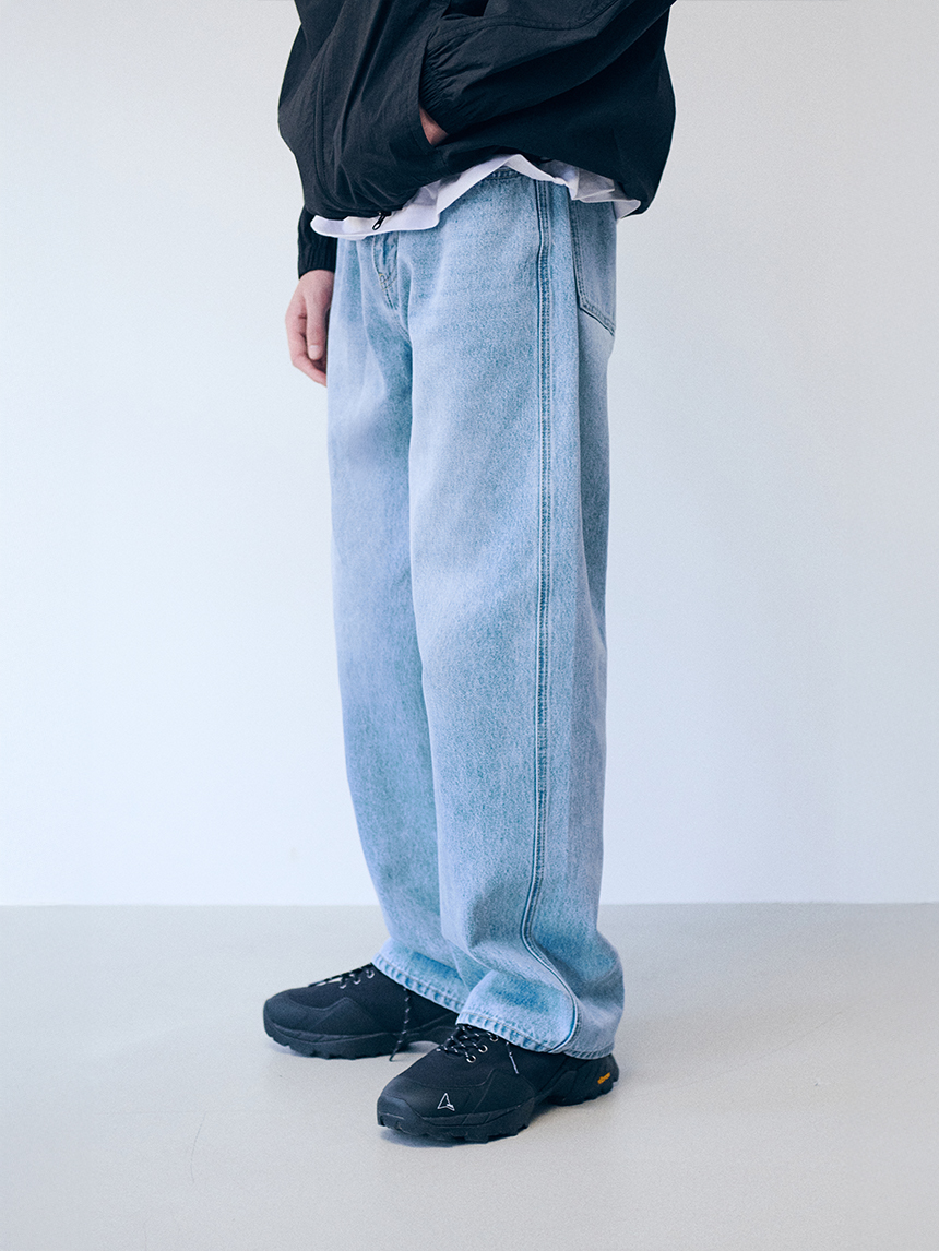 여유로운 핏의 활동이 자유로운 레귤러 핏 데님 팬츠입니다.