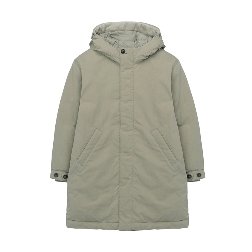 면과 리사이클 폴리에스터(36%) 장점을 결합한 촉감이 부드러운 니트 소재에 면 트윌 조직인 우븐을 배색으로 적용했습니다.