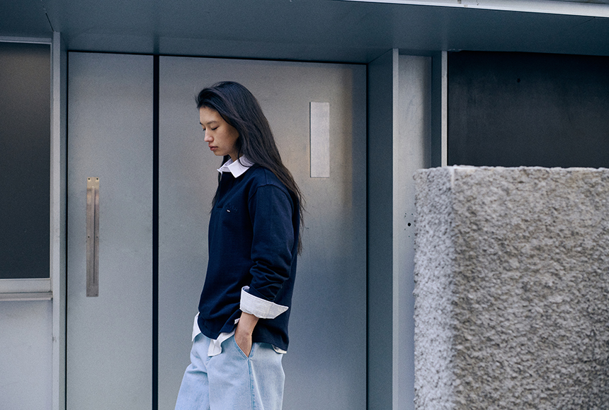 코튼 트윌 원단의 배색 카라와 그래픽 포인트를 더해 단독 착용만으로도 스타일을 완성할 수 있습니다.