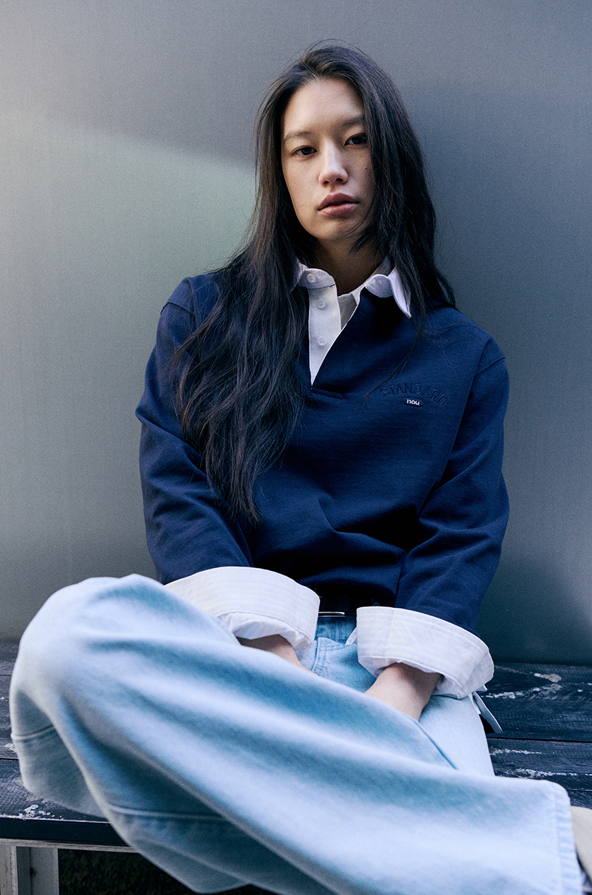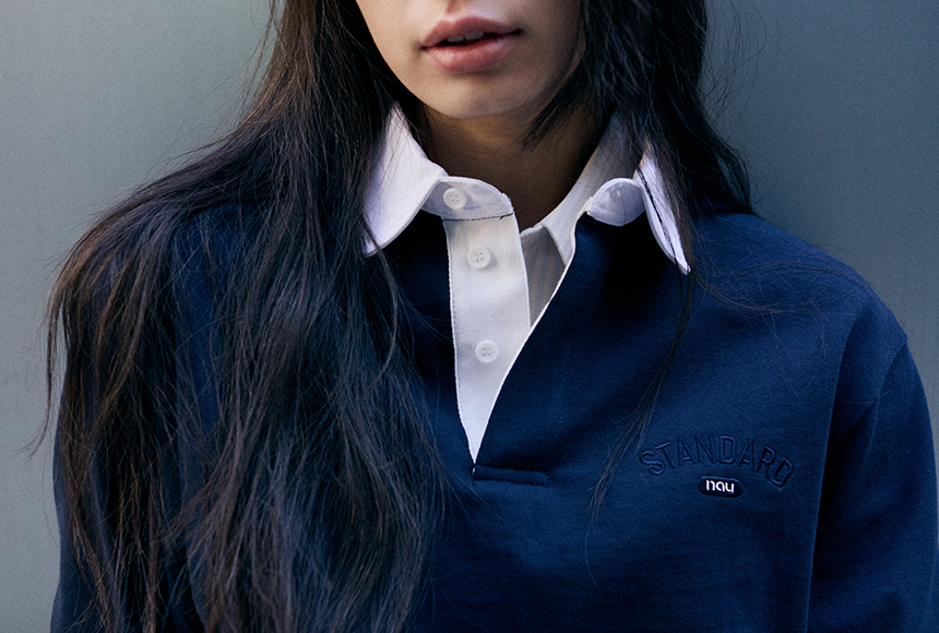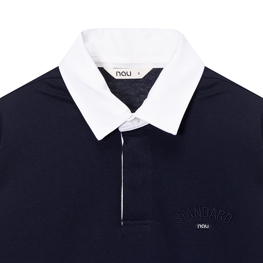데일리로 부담 없이 활용하기 좋은 레귤러 핏의 럭비 카라 티셔츠입니다.