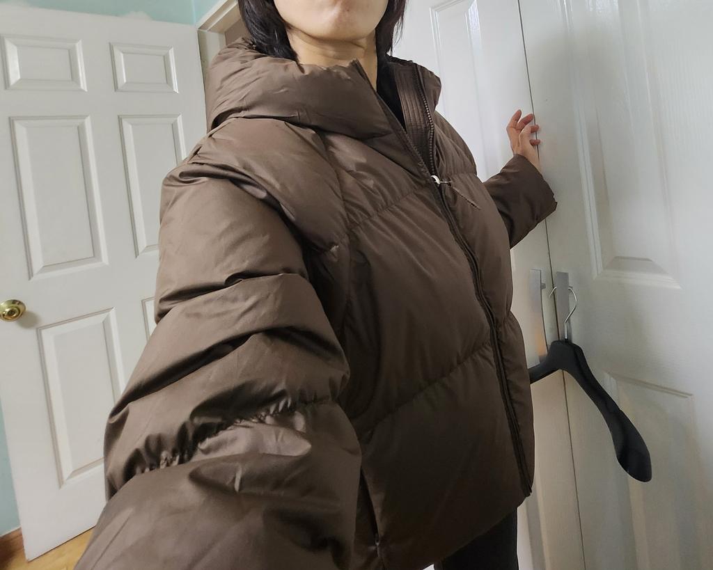 여유로운 핏의 크롭 기장감으로 한겨울에도 트렌디하게 연출 가능합니다.
