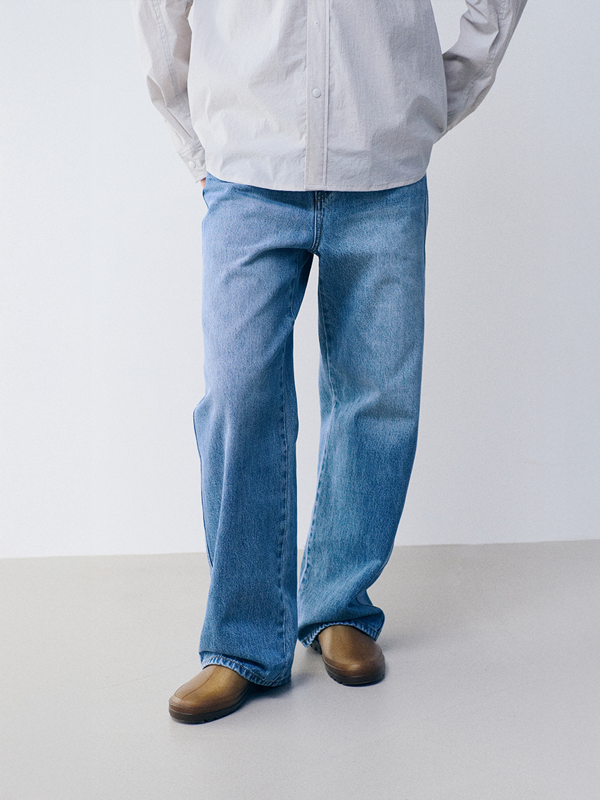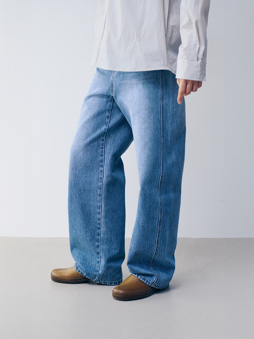 여유로운 핏의 활동이 자유로운 레귤러 핏 데님 팬츠입니다.