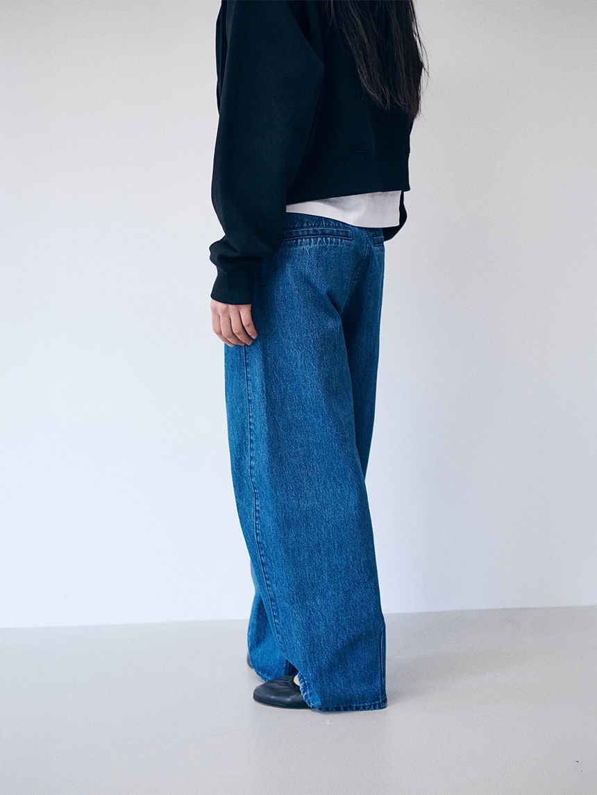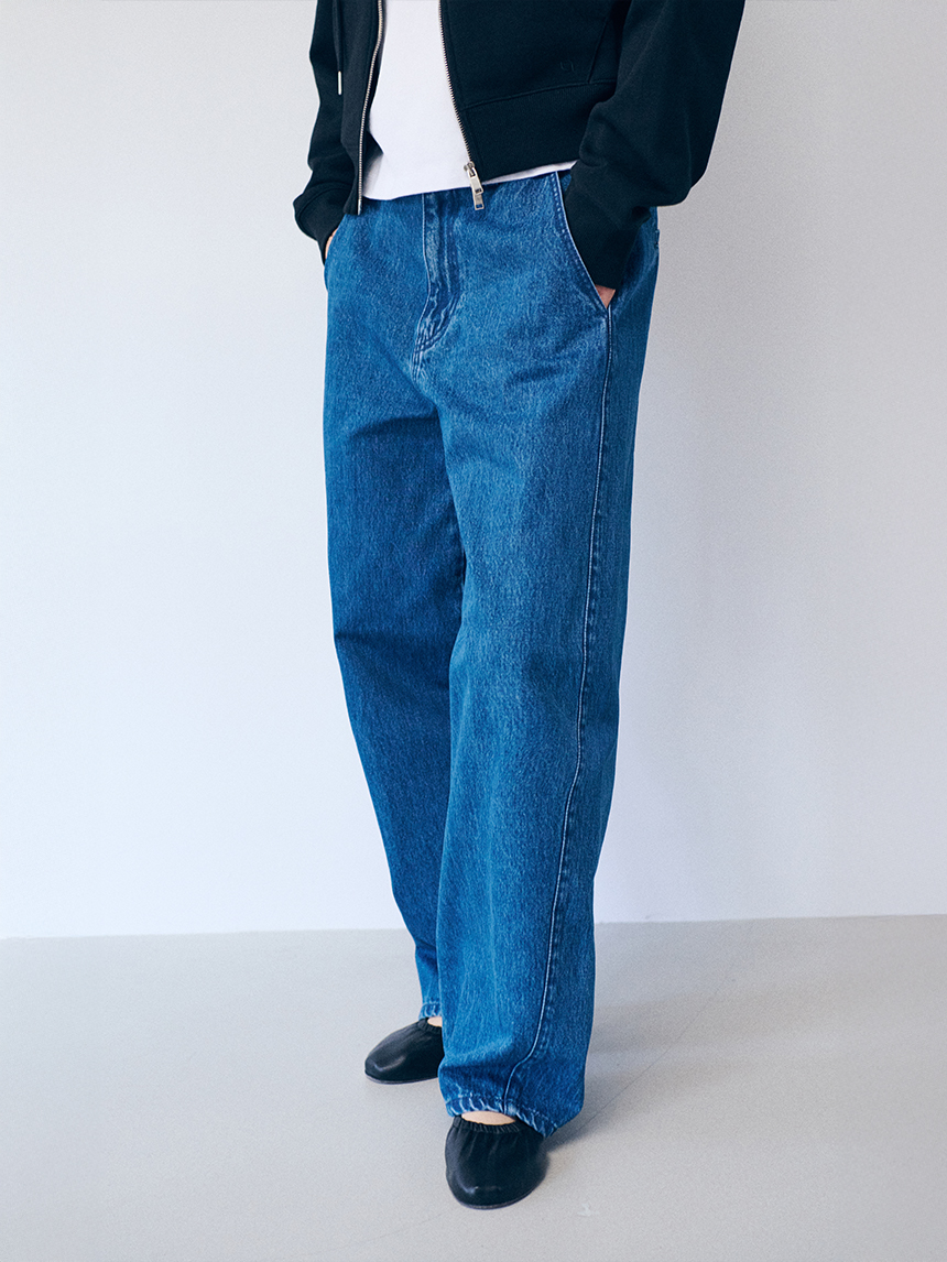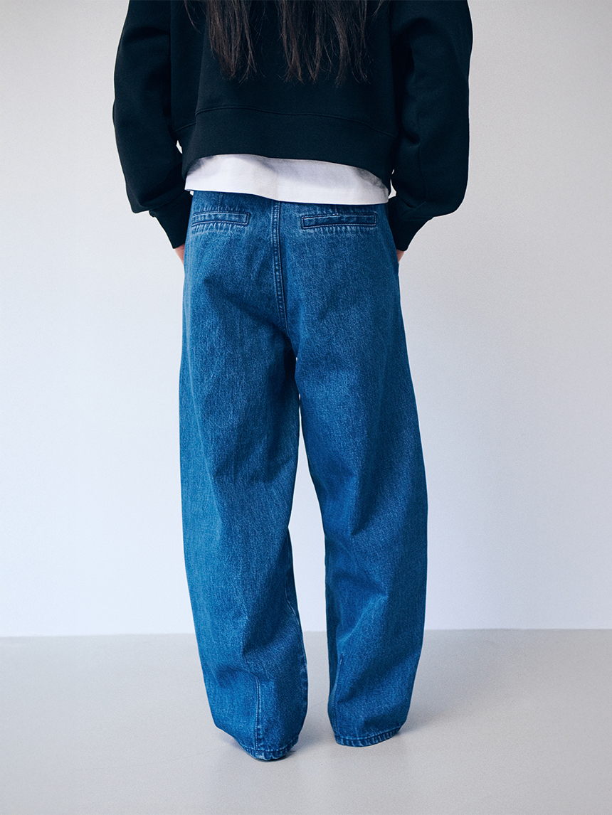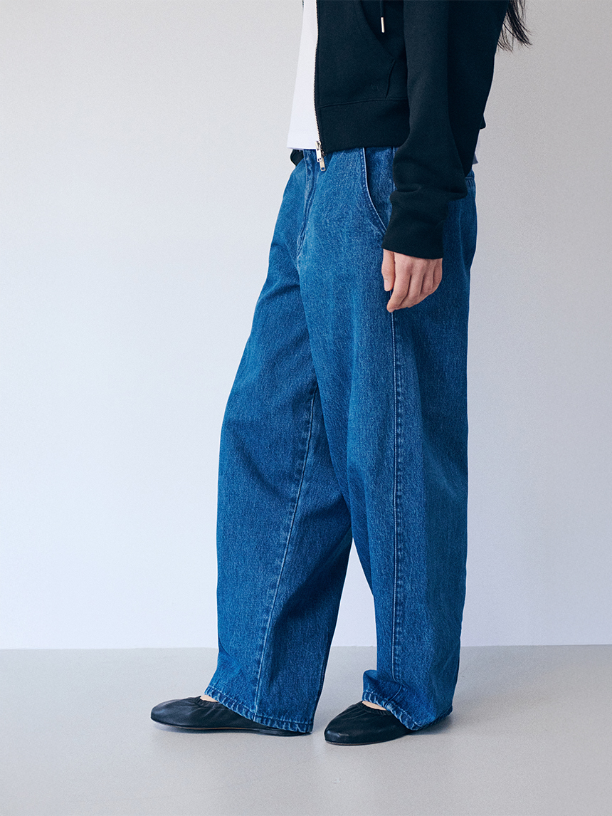 W 에센셜 데님 베럴 레그 팬츠 M.BLUE