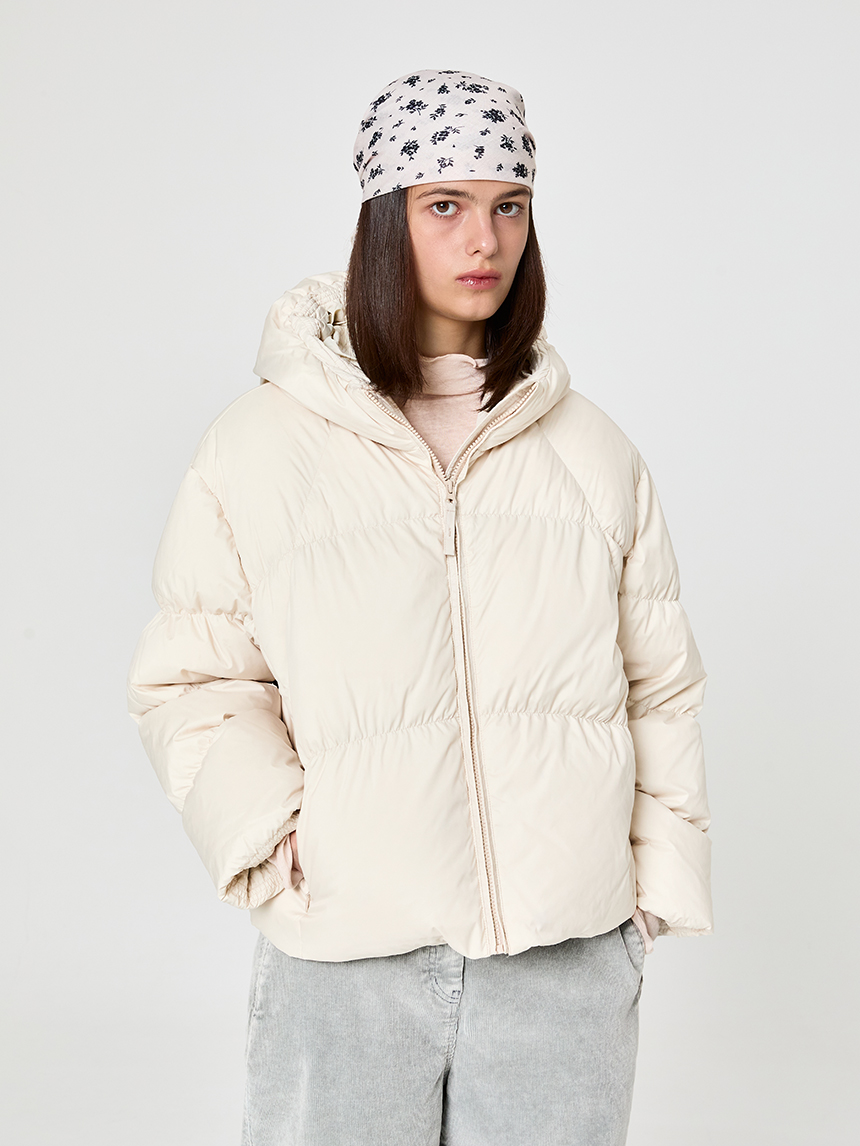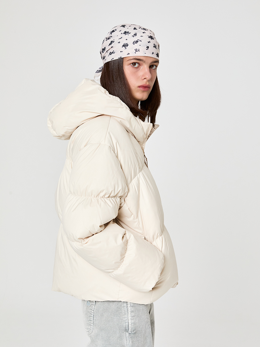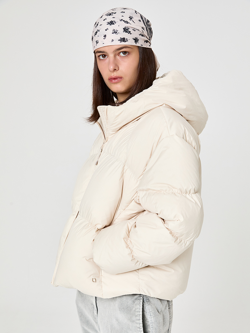 가볍고 따뜻하면서도 은은한 광택감과 볼륨감이 매력적인 여성 후드 다운입니다.