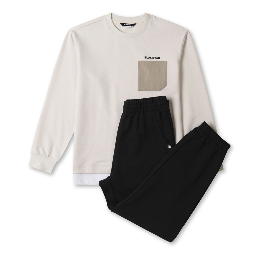- 고급스러운 외관이 돋보이는 우븐 '맨투맨+조거팬츠' 세트 상품입니다.