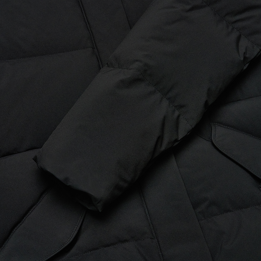 얇은 두께감의 소재를 적용하여 가벼운 착용감을 전달하는 미드기장 다운자켓입니다.