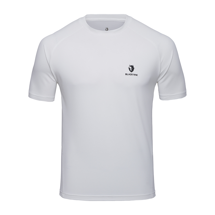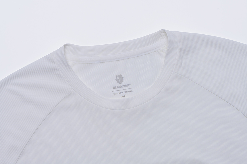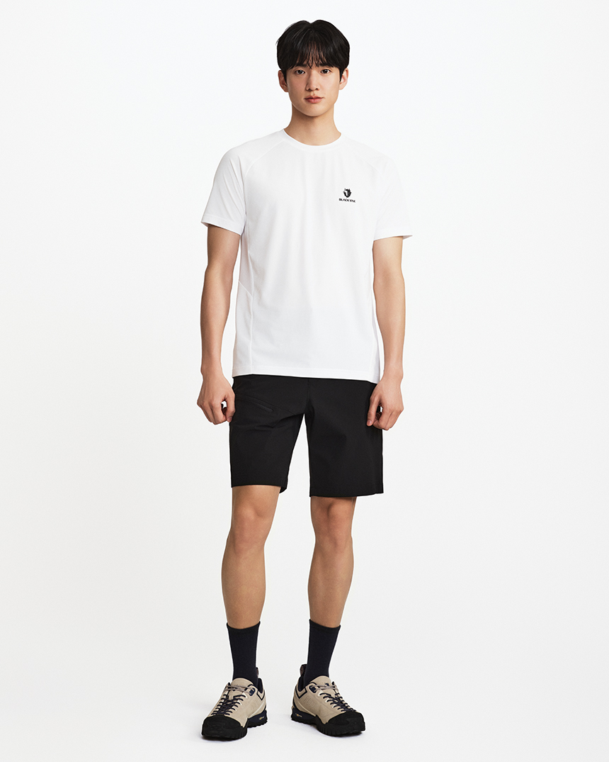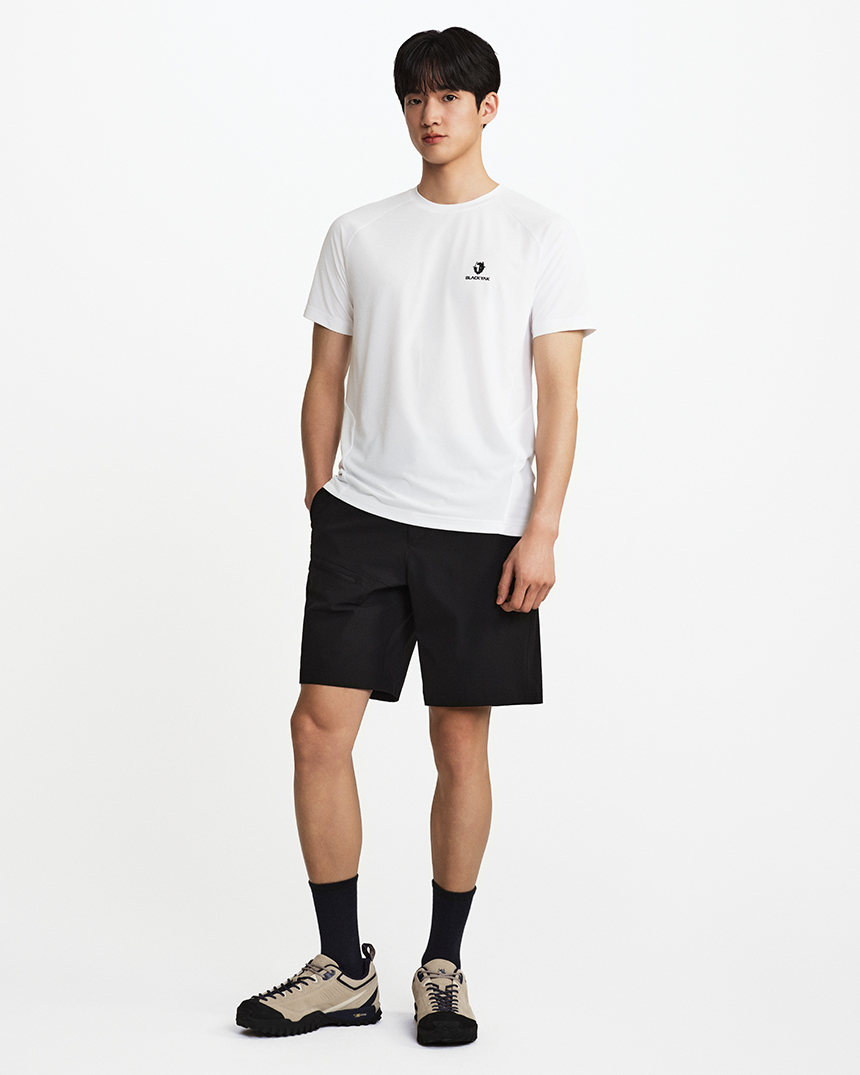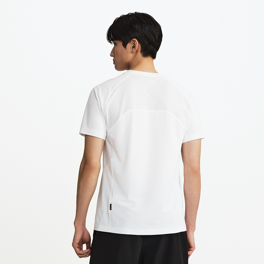 등판에 메쉬(Mesh)조직 원단을 적용하여, 각종 활동시 우수한 통기성을 가진 절개형 반팔 라운드 티셔츠 입니다.