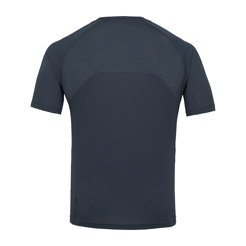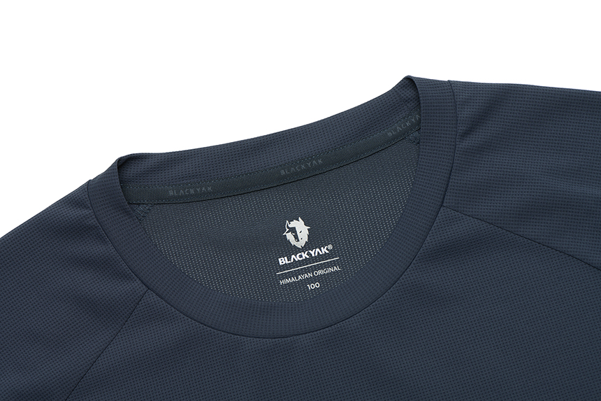 등판에 메쉬(Mesh)조직 원단을 적용하여, 각종 활동시 우수한 통기성을 가진 절개형 반팔 라운드 티셔츠 입니다.