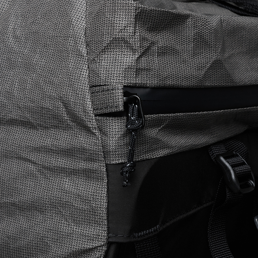 메인 수납은 롤탑 구조로 확장 가능하며, 등쪽 상단의 지퍼 개방부를 통해 빠른 접근이 가능합니다.전면 메쉬 포켓 및 측면 포켓으로 다양한 장비 수납이 가능합니다.