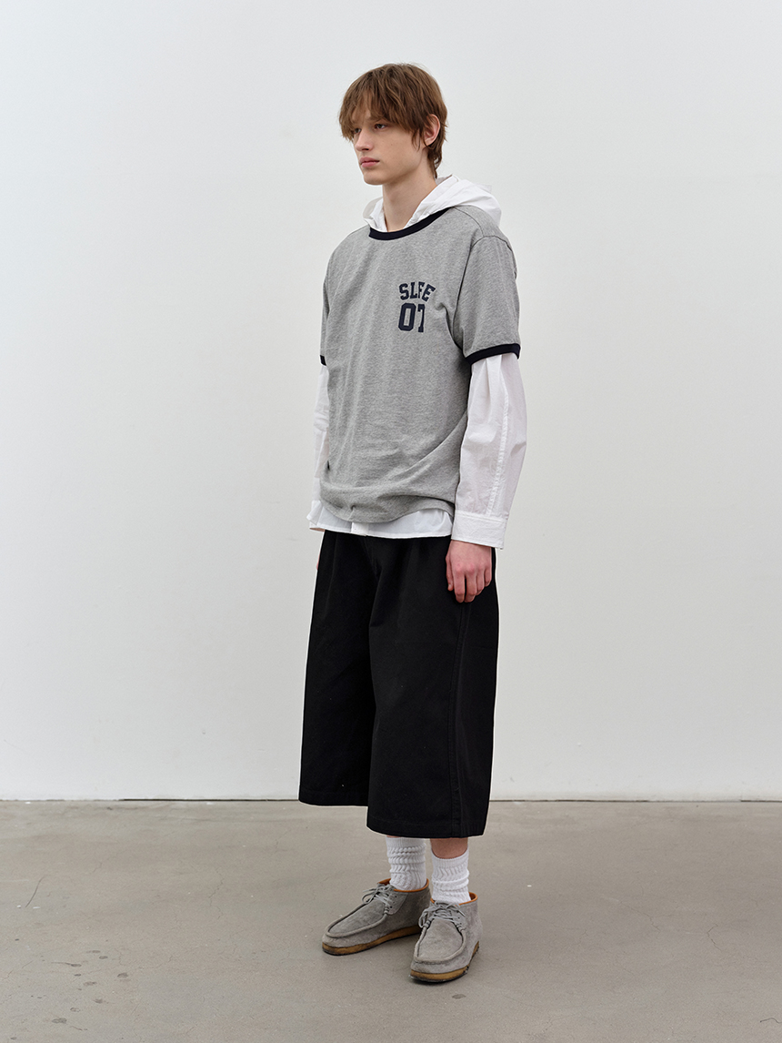 데일리로 부담 없이 활용하기 좋은 레귤러 핏 링거 티셔츠입니다.