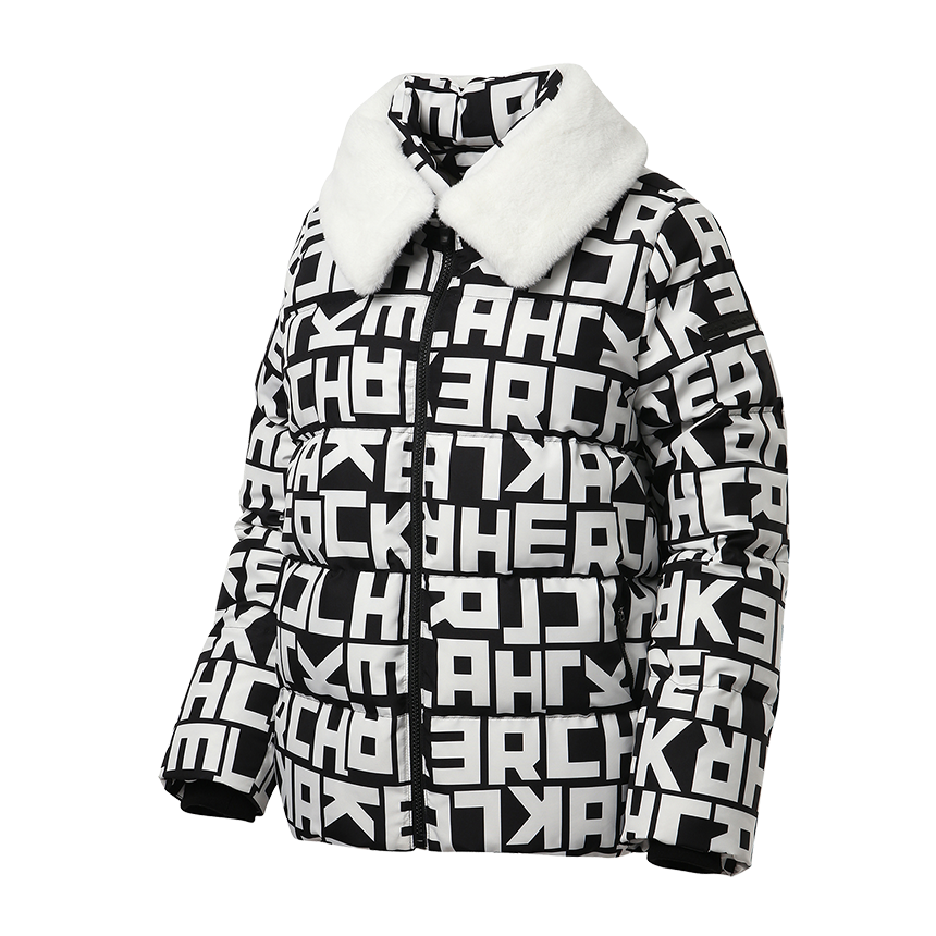 - 여성 겨울 하이브리드 셔링 다운 풀집 스웨터입니다.