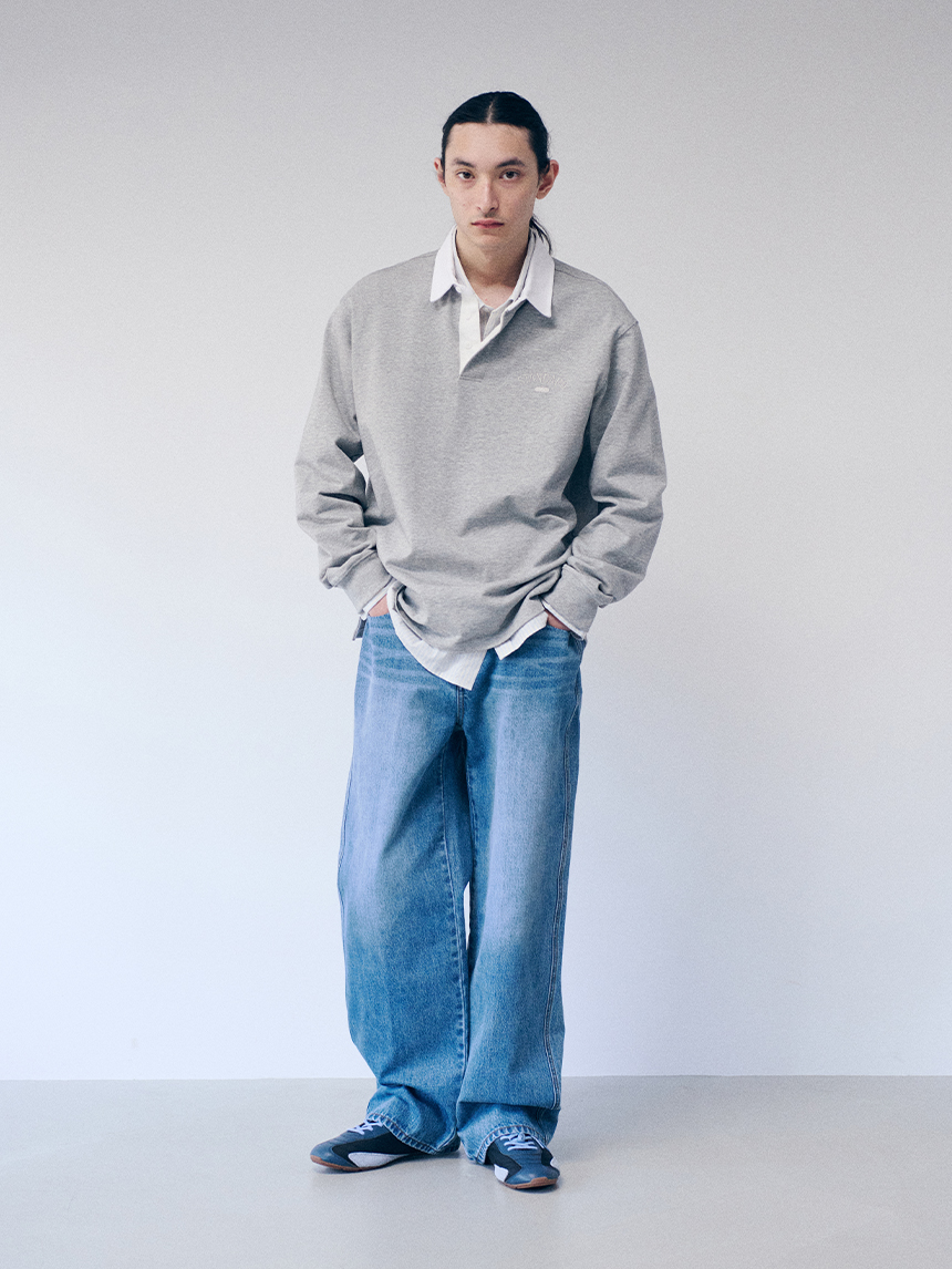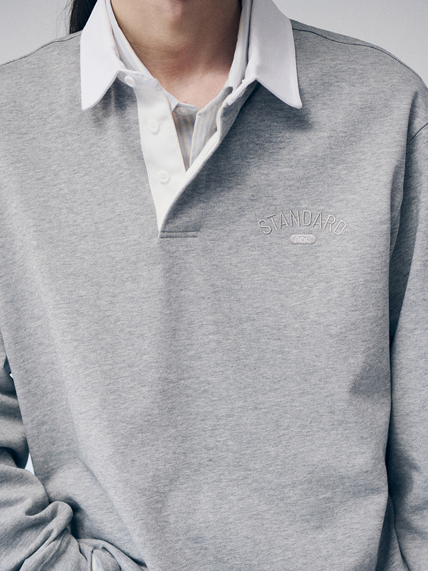 데일리로 부담 없이 활용하기 좋은 레귤러 핏의 럭비 카라 티셔츠입니다.