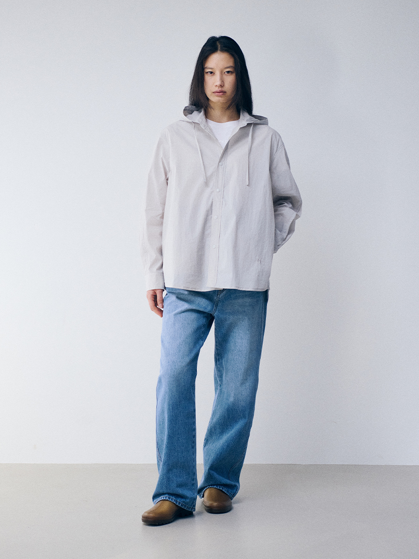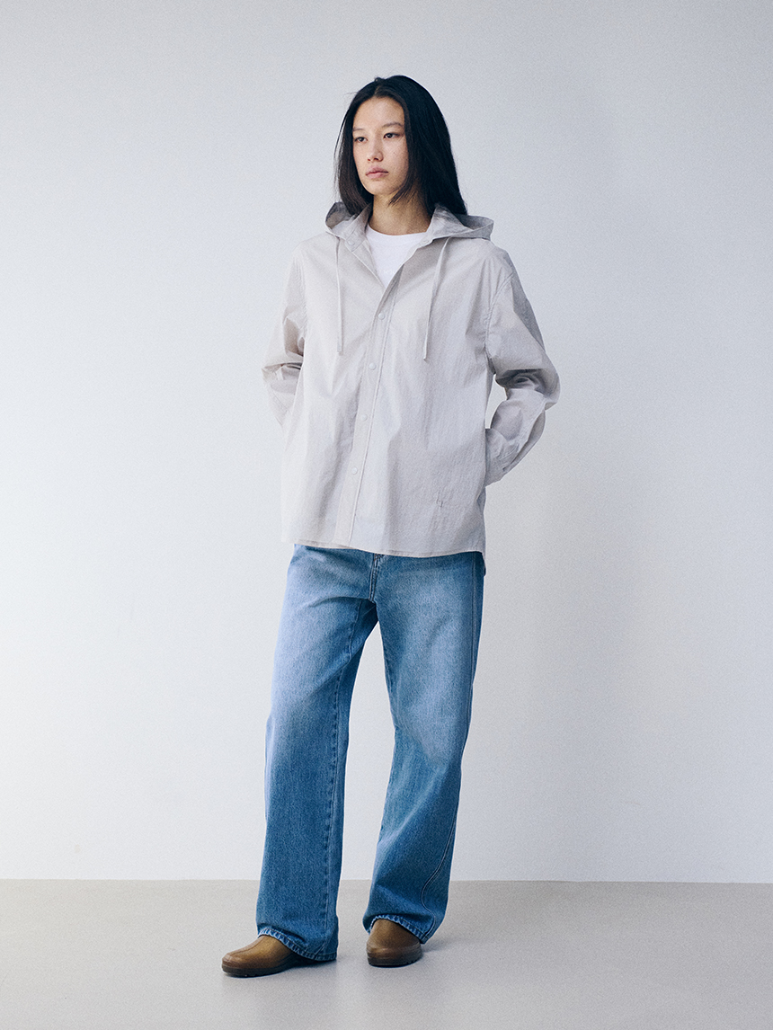 셔츠 카라 대신 후드와 사이드포켓이 더해져 가볍고 활동적으로 착장 가능합니다.