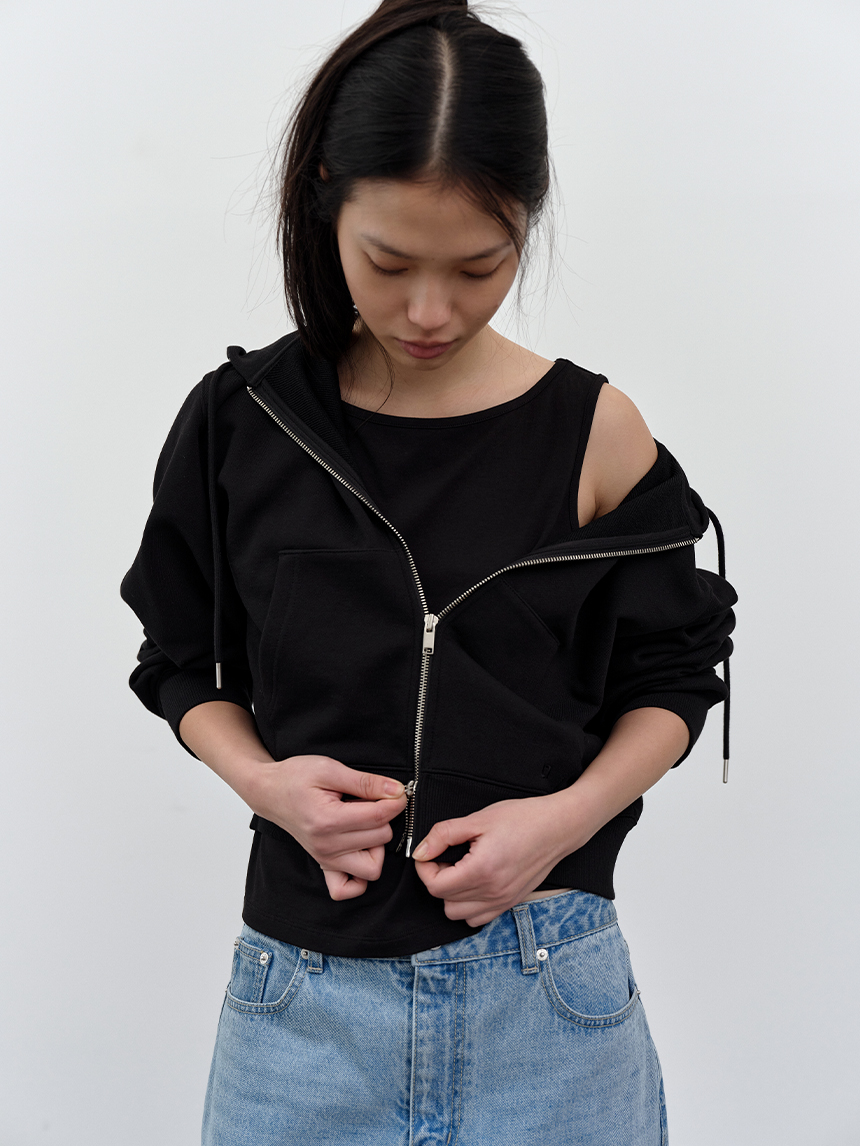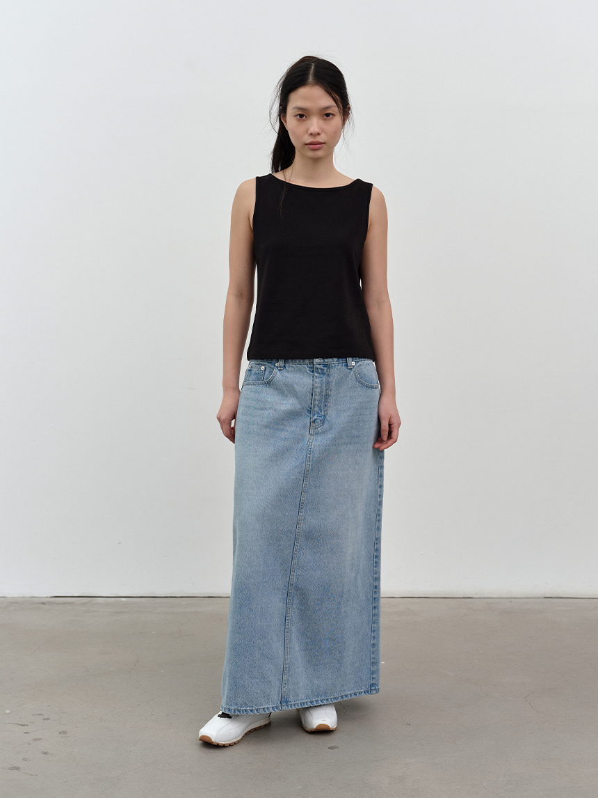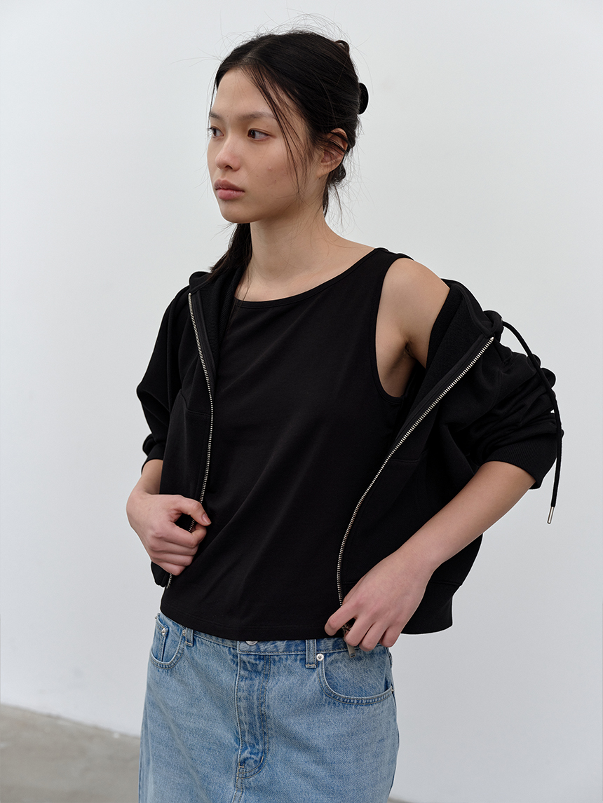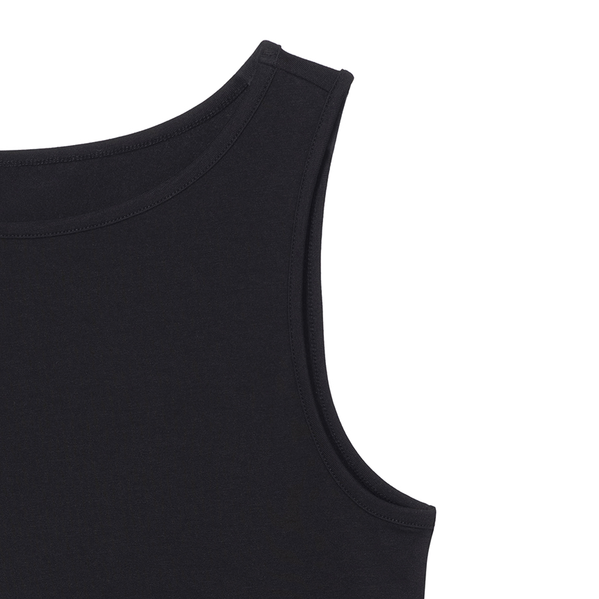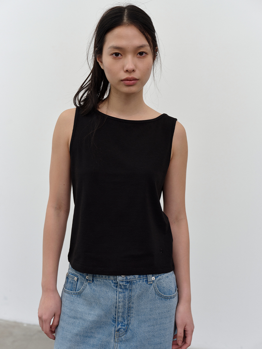 W 모달 보트넥 슬리브리스 탑 BLACK