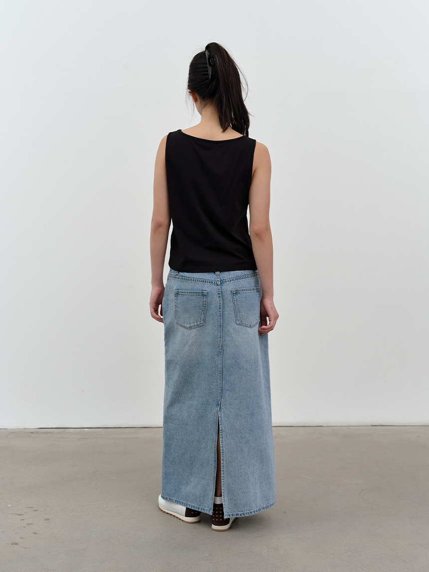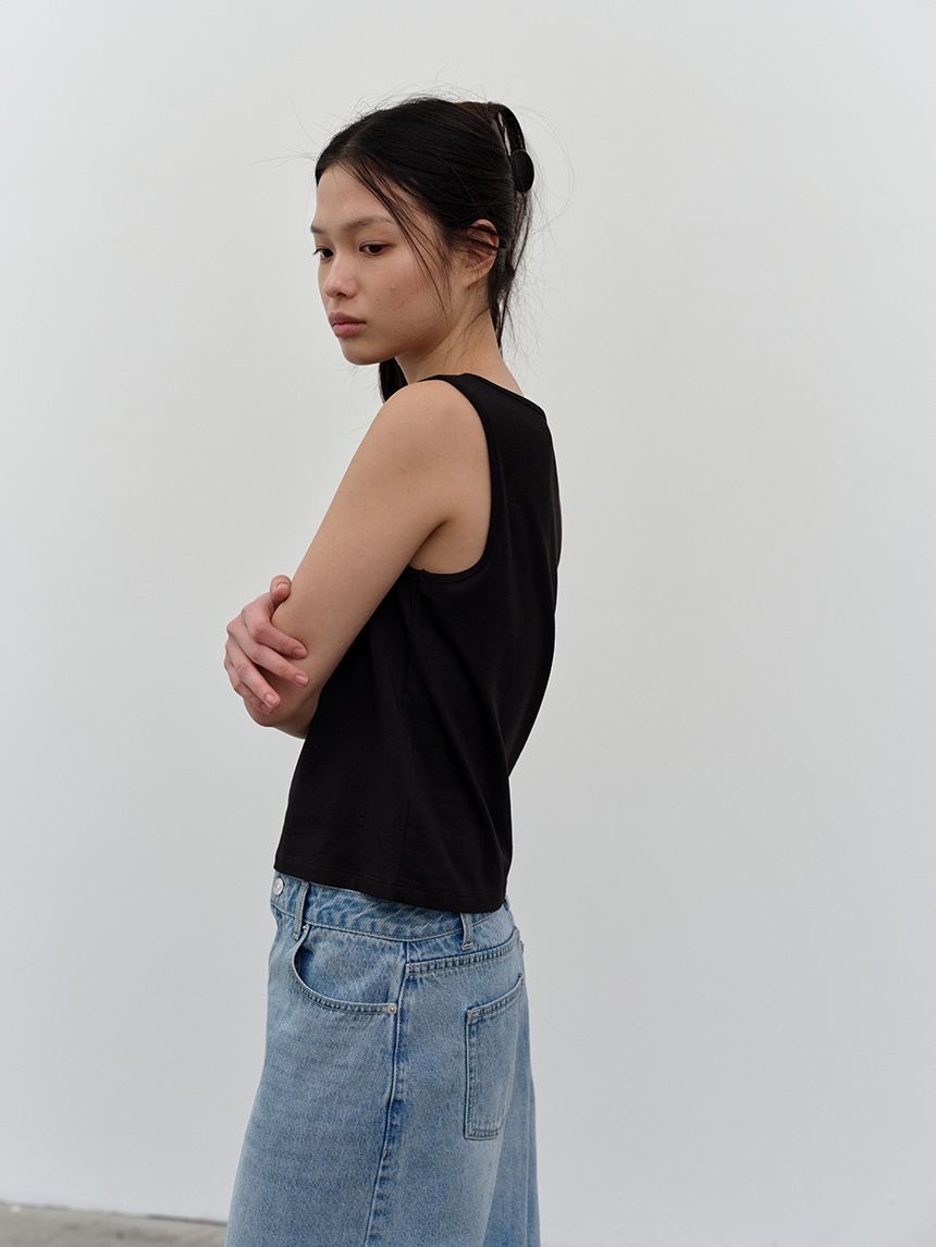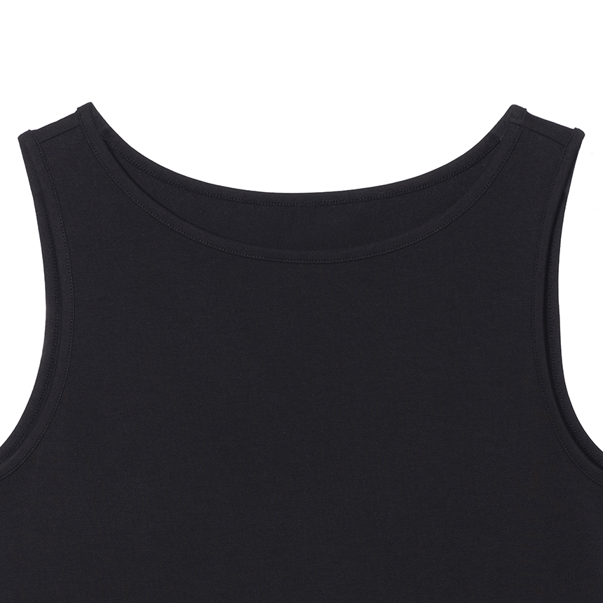W 모달 보트넥 슬리브리스 탑 BK