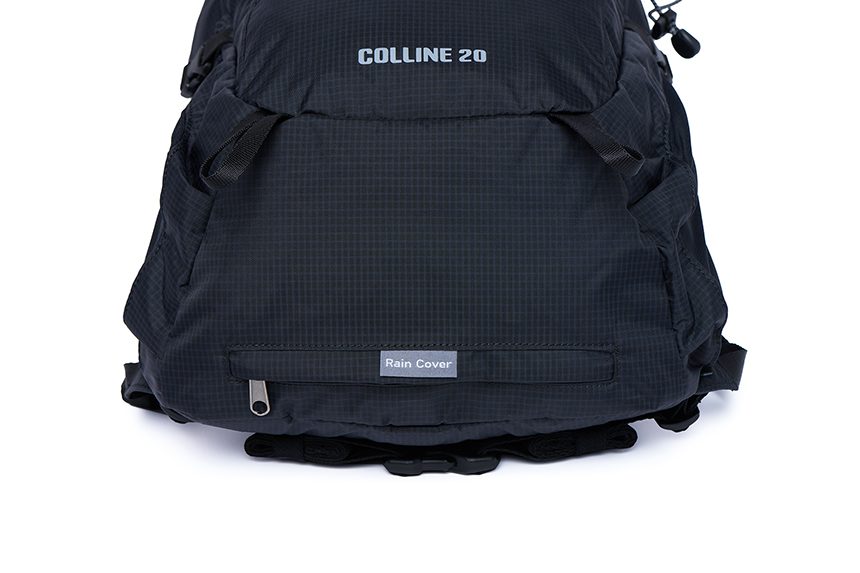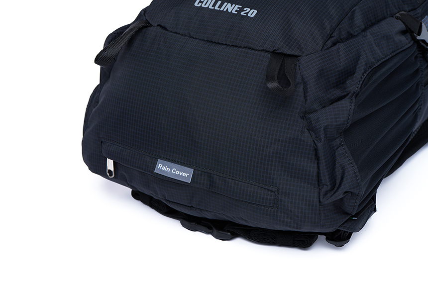 배낭 하단 포켓에 레인커버는 우천 시 편하게 사용하고 수납할 수 있습니다.