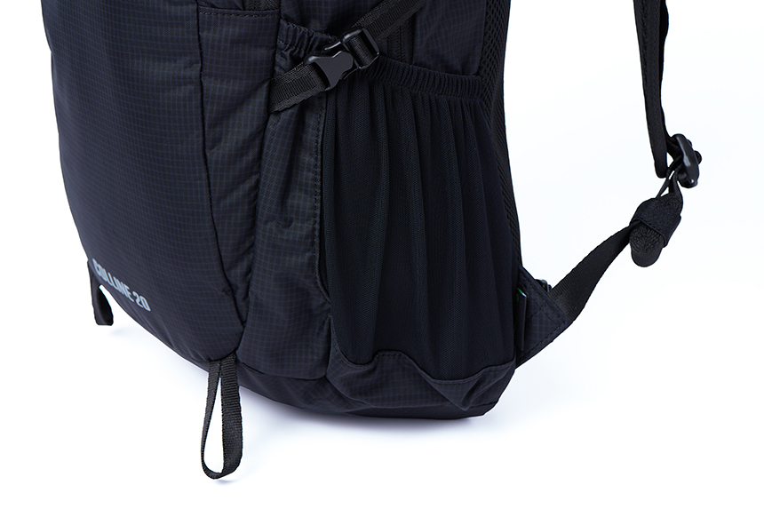 가벼운 산행뿐만 아니라 일상생활에까지 다용도로 활용이 가능한 20L 배낭으로 경량 립스탑(regen robic 리사이클) 원단을 사용하였습니다.