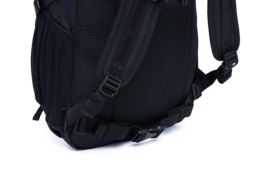 500ml 물병 등 다용도 수납이 가능하도록 양쪽 사이드 메쉬 포켓을 적용하였으며, 사이드 웨빙을 이용하여 고정이 가능하도록 하였습니다.