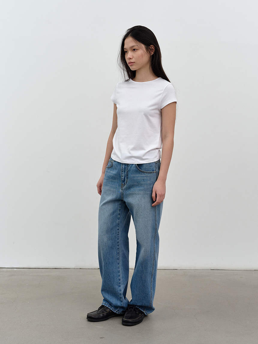 바디라인을 자연스럽게 잡아주는 레귤러 핏 반팔 티셔츠입니다.