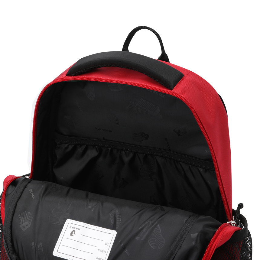 º 3포켓 구성(전면·메인·사이드) 으로 학용품, 개인소지품, 실내화를 체계적으로 정리