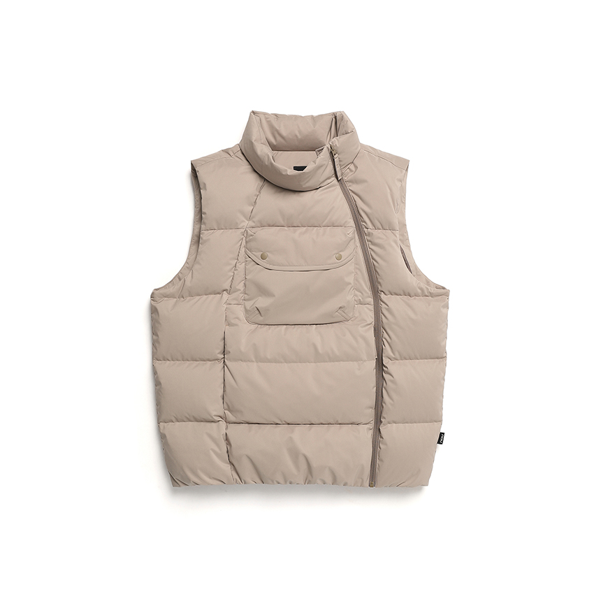 유선형 퀼팅과 자연을 닮은 소재의 유니크한 다운베스트입니다.