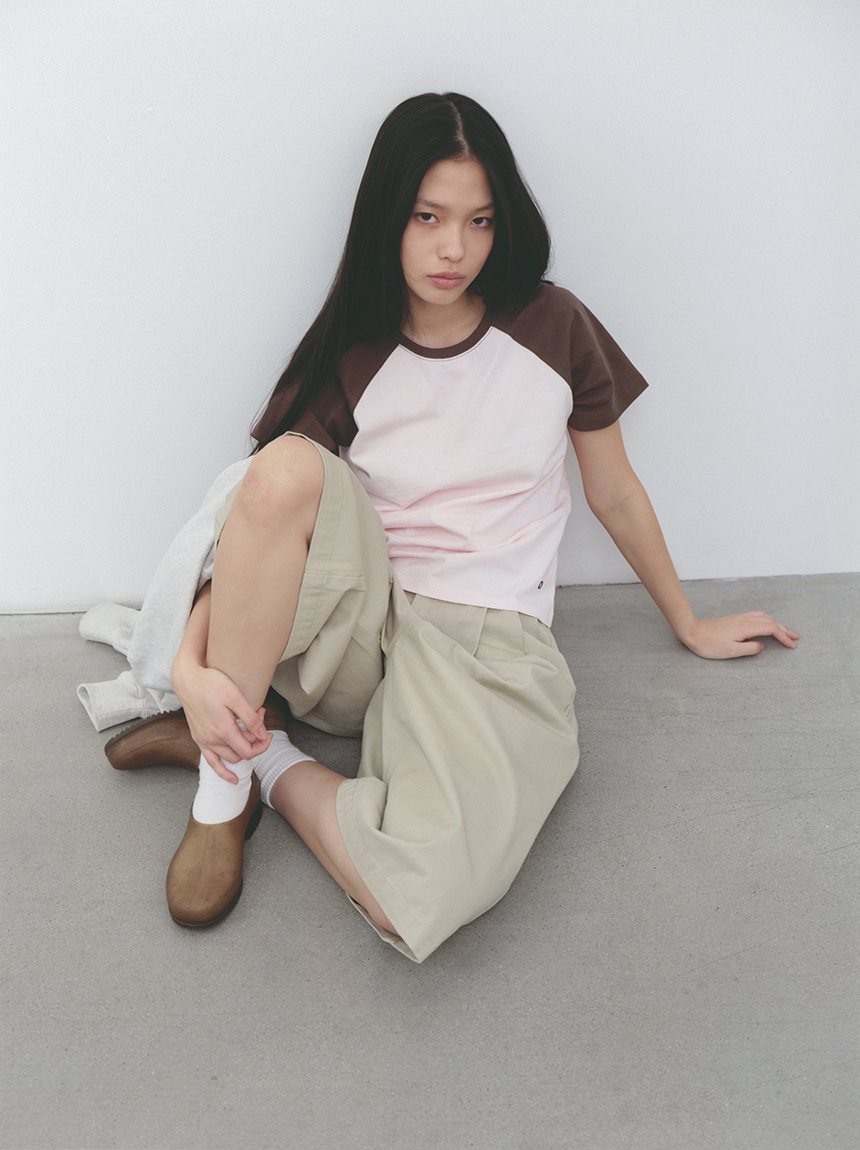어깨선을 따라 자연스럽게 떨어지는 레글런 구조에 바디와 소매 배색 디테일을 더해 캐주얼한 포인트와 완성도를 높였습니다.