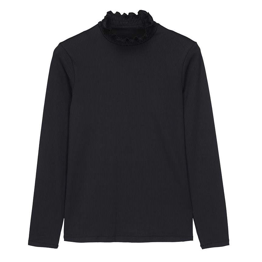 - 베이직한 터틀넥에 사선 에리 변형 디자인을 한 하이넥 티셔츠입니다.