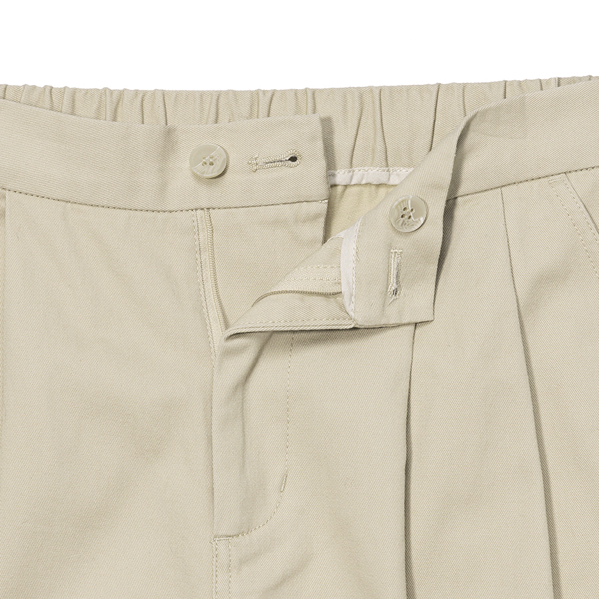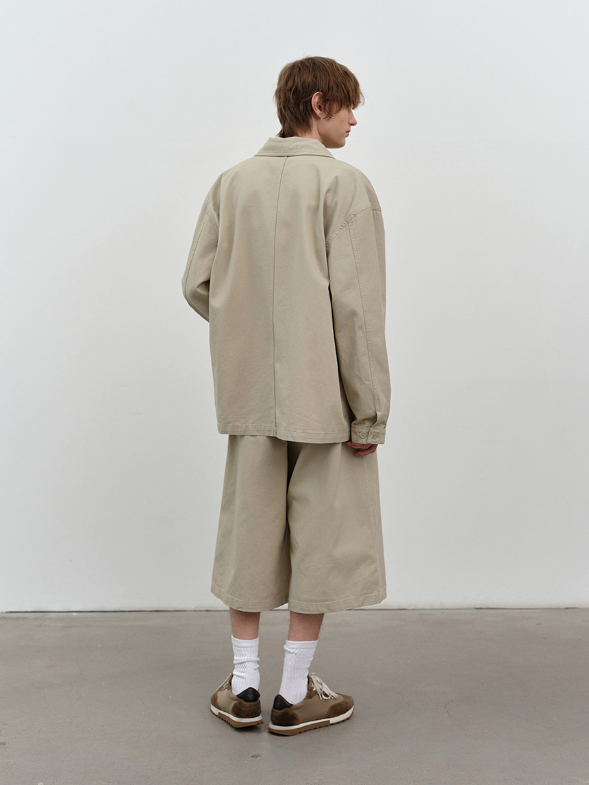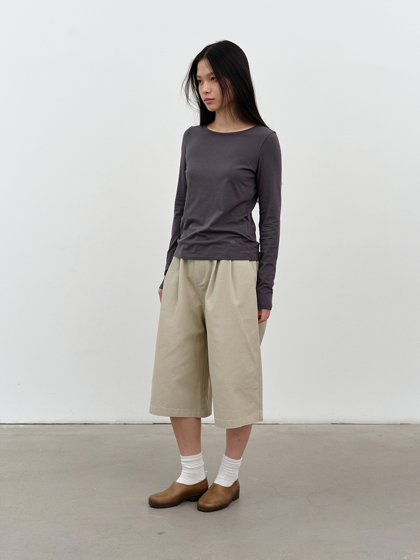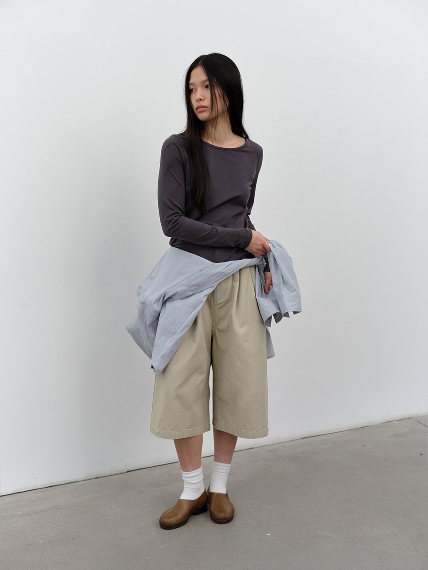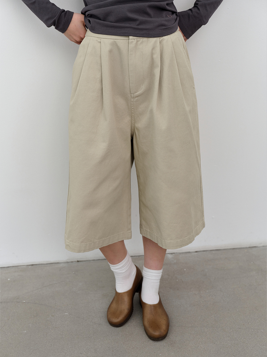 무릎 아래로 떨어지는 버뮤다 기장과 전면 핀턱 디테일이 더해져 균형 잡힌 실루엣을 완성합니다.