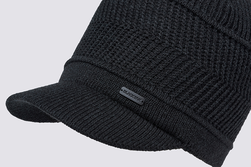 니트로 된 비니에 모자챙을 달아 보온력뿐만 아닌 차양기능까지 더해진 방한 모자 입니다