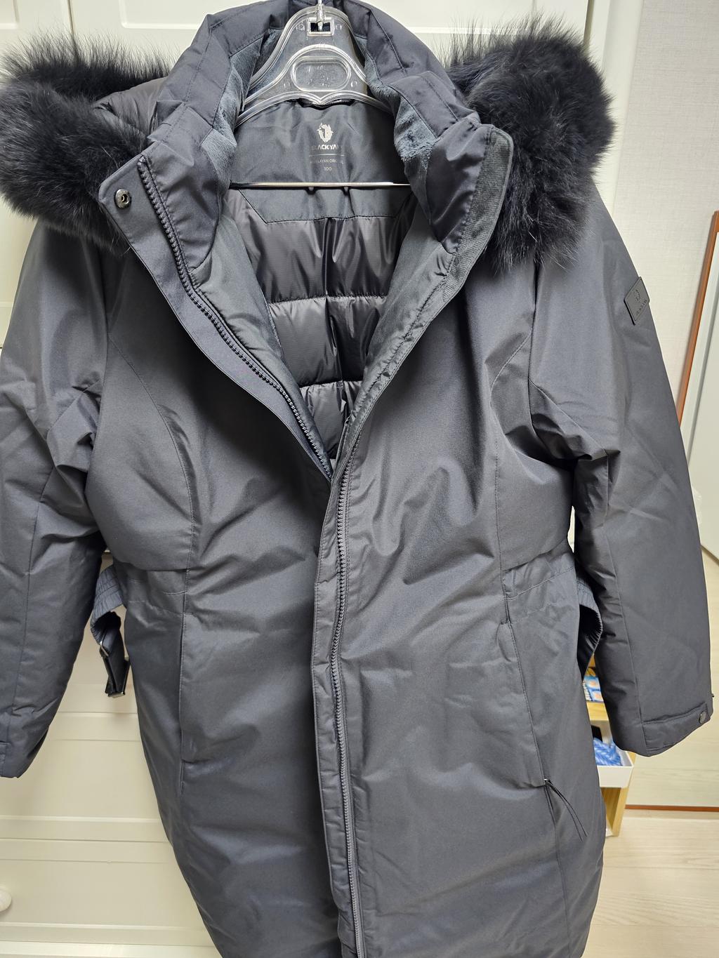 소재 겉감 : 폴리에스터 100%, 안감 : 나일론 100%, 안감2 : 나일론 100%, 안감3 : 폴리에스터 100%, 충전재 : 우모(거위) 솜털 80%, 깃털 20%, 후드털 : 천연모피(여우) 100%